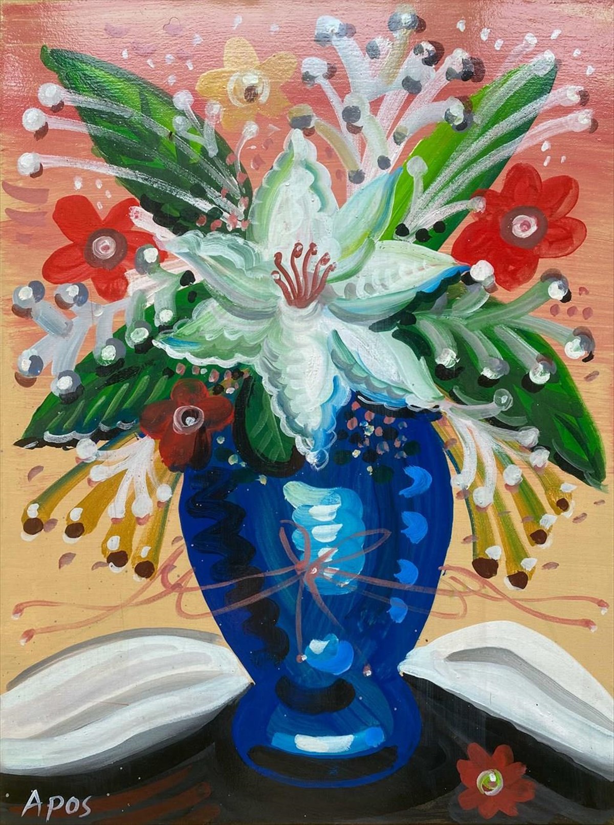 Στον Πολυχώρο Τέχνης του ξενοδοχείου ANEROUSSA στο Μπατσί της Άνδρου, ο γνωστός ζωγράφος Απόστολος Χαντζαράς (Apos) ζωγραφίζει ό,τι απολαμβάνει και τον αγγίζει, κι όλα όσα αισθάνεται.