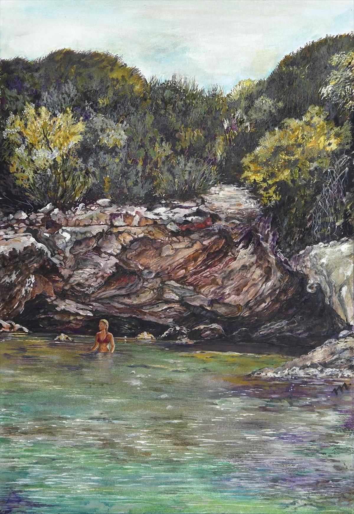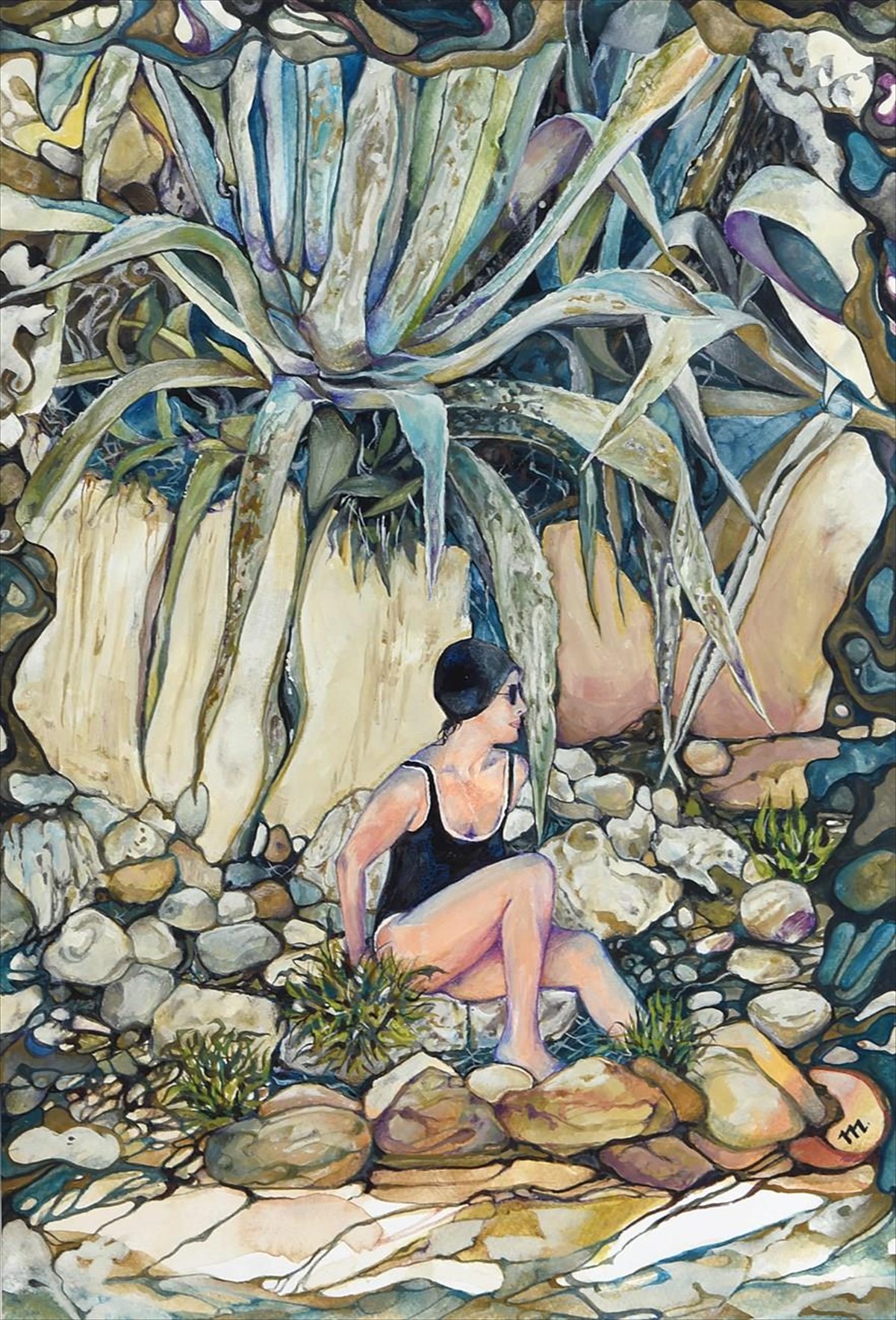 Η Τάνια Δρογώση ανιστορεί το νησί με τοπιογραφικές αναφορές βιωμένων τόπων. Χρησιμοποιεί σημεία του νησιού ως μοντέλα αλλά συνθέτει τις δικές της εικόνες με σαγηνευτικές παραλίες, απόκρημνους βράχους, παρθένες ακρογιαλιές και ενίοτε τα εμπλουτίζει με ανθρώπινη παρουσία. Η γραφή της κυριαρχείται από μια έκδηλη παραστατικότητα με αισθητές ιμπρεσιονιστικές αναφορές».