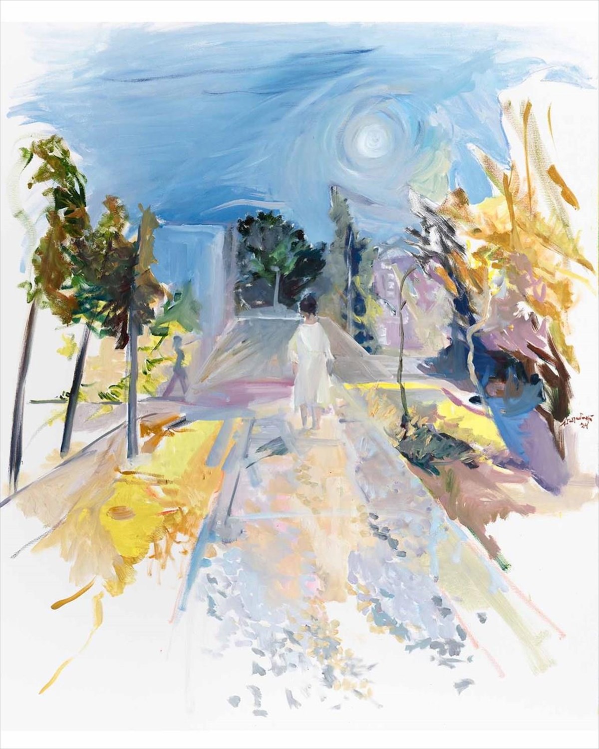 Στον αντίποδα της μελαγχολικής διάθεσης που διαπνέει τα έργα αυτά, η επόμενη ενότητα αποτυπώνει μία παλλόμενη, γεμάτη ζωντάνια ατμόσφαιρα με τα λαμπερά, σχεδόν fauve χρώματα που συνυπάρχουν σε εκρηκτικούς συνδυασμούς. Το βλέμμα της ζωγράφου αγκαλιάζει με τρυφερότητα αγαπημένα σε όλους μας σημεία στην πόλη, από το Μουσείο Κυκλαδικής Τέχνης στη Βασιλίσσης Σοφίας μέχρι στέκια για καφέ και ποτό στα Εξάρχεια και το Παγκράτι. Ανθρώπινες μορφές ενοικούν τα έργα αυτά, σε στιγμές χαλαρής κοινωνικότητας, συνομιλώντας, χαζεύοντας τις βιτρίνες ή αφήνοντας το βλέμμα να περιπλανηθεί σε μία πανοραμική άποψη της Πλατείας Ομονοίας από ψηλά.