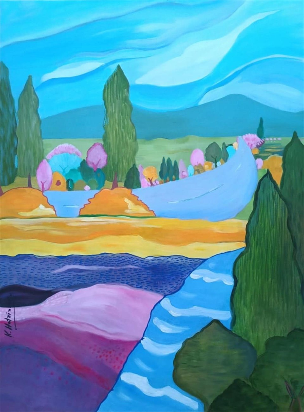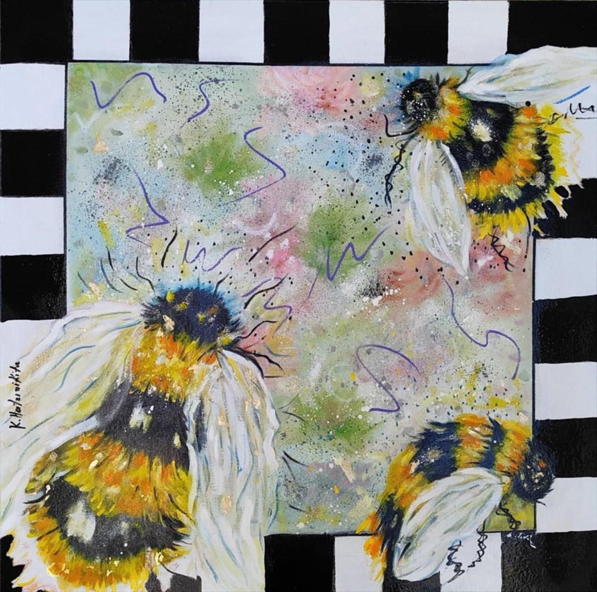 Στα έργα που παρουσιάζονται, άλογα, μέλισσες, τίγρεις συνυπάρχουν, ακολουθώντας τα παιχνιδίσματα της μουσικής ενός σαξόφωνου, την ώρα που δυο άνθρωποι ερωτεύονται, ονειρεύονται και σύγχρονες γυναίκες με ποπ διάθεση κοιτάζουν το μέλλον, άλλοτε στοχαστικά κι άλλοτε ρομαντικά, ακολουθώντας τις μυρωδιές από λουλούδια και παραλίες και συνοψίζοντας τη ζωή μέσα από την αισιόδοξη ματιά της εικαστικού και την οικολογική της διάθεση να δημιουργεί κόσμους που μπορεί να φαντάζουν ουτοπικοί, αλλά είναι στο χέρι μας να είναι πραγματικοί.