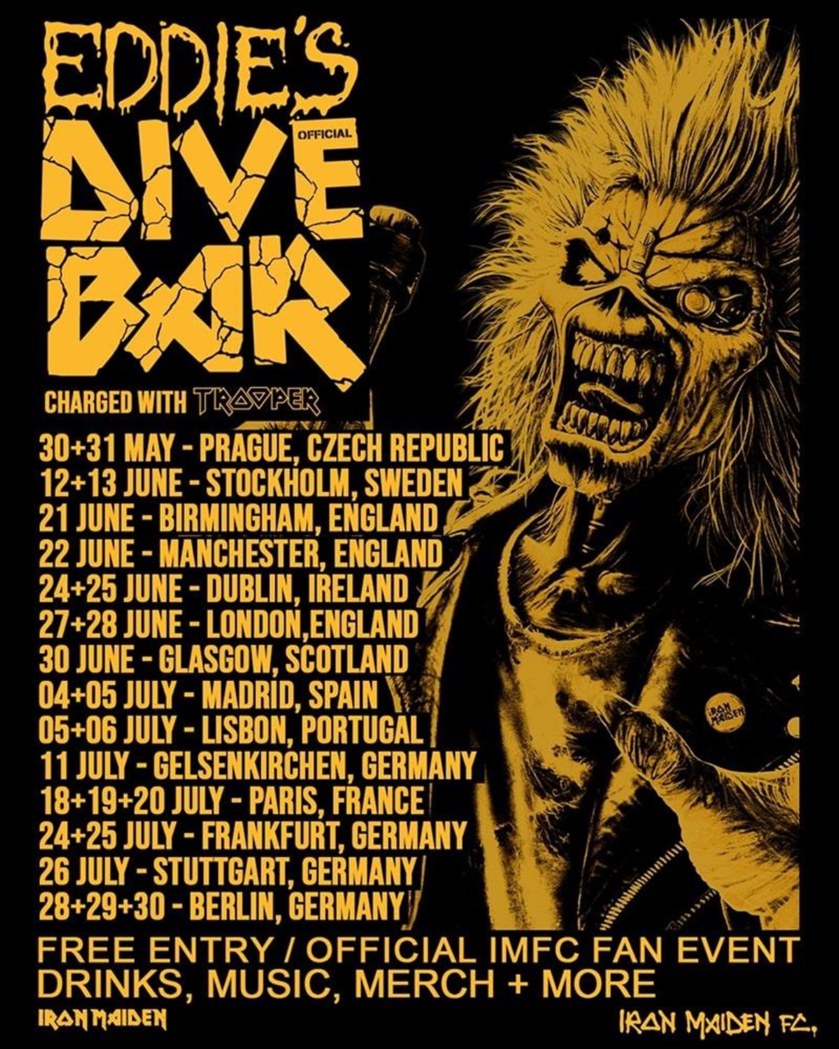 Η περιοδεία είναι σχεδόν όλη sold out και τελειώνει στις 2 Αυγούστου στην Πολωνία. Σε επιλεγμένους σταθμούς της, μπορείτε να επισκεφτείτε το Eddie's Dive Bar, για να προμηθευτείτε το merch του σχήματος πριν τη συναυλία, να δοκιμάσετε την περίφημη μπύρα τους, Trooper, το Darkest Red κρασί που κυκλοφόρησαν πριν λίγο διάστημα και βέβαια να μιλήσετε με οπαδούς από όλο τον κόσμο για την αγαπημένη σας μπάντα.