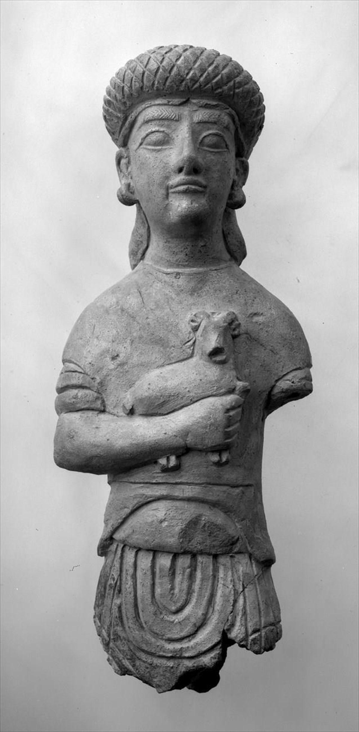 Κυπριακό ειδώλιο νεαρού άνδρα που κρατά κατσίκι προς θυσία (7ος αι. π.Χ.)