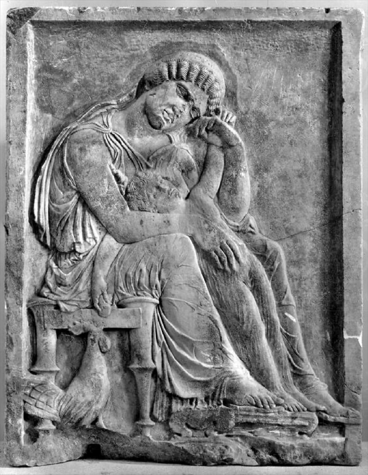 Η Λαλέ χρησιμοποιώντας την εικαστική γλώσσα των επιτύμβιων στηλών, ξεκινά την πορεία της πρωταγωνίστριας της, Άννας, από το Μεγάλο Ανάγλυφο των Ελευσίνιων Μυστηρίων (440-430 π.Χ.), με την μητέρα - θύμα βιασμού και Θεά της καλλιέργειας - Δήμητρα, και την κόρη της - θύμα γυναικοκτονίας και Θέα του Άδη - Περσεφόνη, να ευλογούν το οδοιπορικό της. Η διαδρομή μας, παρέα με την Άννα, συνεχίζεται με δύο επιτύμβιες στήλες του 5ου και 4ου αιώνα π.Χ.