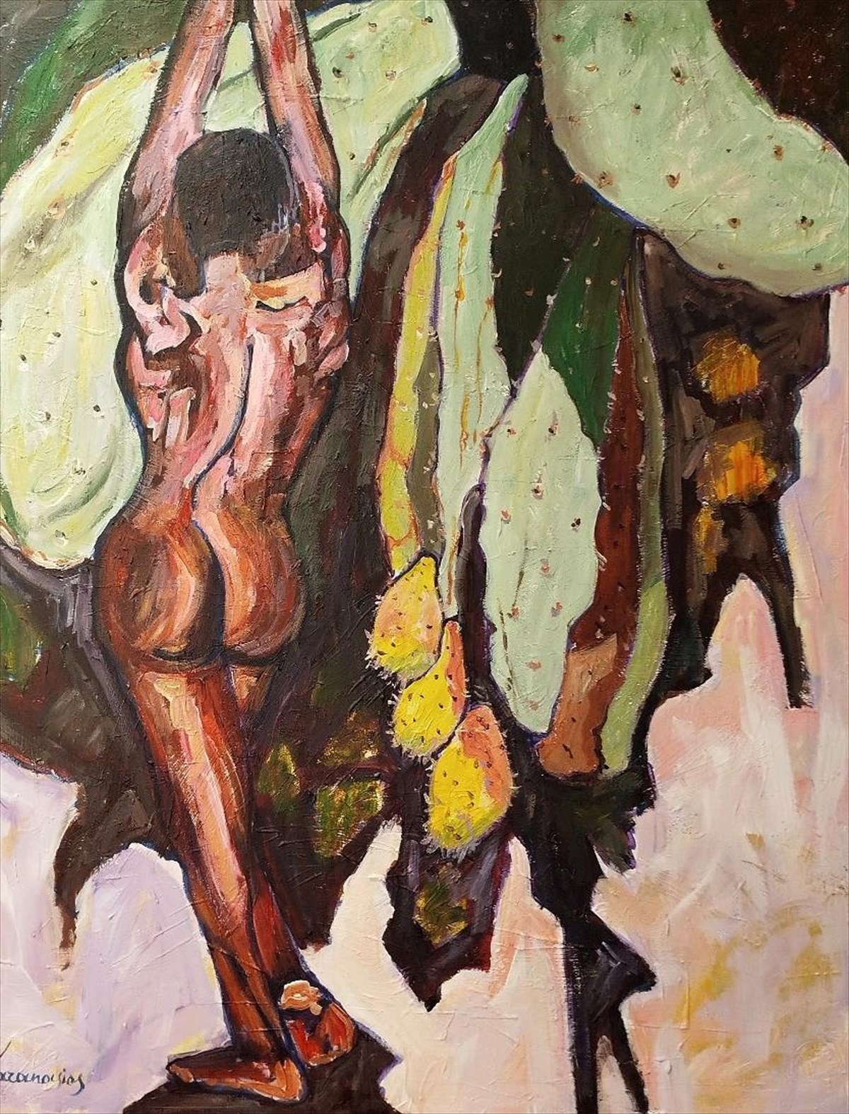 Στα σύνθετα αυτά εξομολογητικά χρονολόγια ενός ιδιωτικού ερωτικού θέρους με πυκνή βλάστηση παρουσίας και περιρρέοντα αισθησιασμό, η μέθεξη εικόνας και αισθήματος, η εναλλαγή απεικόνισης βιωμένων εμπειριών και ενδογενών ονειρώξεων, η γλυπτική διαχείριση της φόρμας και των όγκων μέσω μιας διαρκούς αναζήτησης οργανικών ζωγραφικών συγκλίσεων, ορίζουν το άγνωστο εκείνο νησί όπου κατοικούν οι κεχριμπαρένιες ηδυπαθείς ηρωίδες και οι ανεξερεύνητοι οργιαστικοί κήποι του ζωγράφου.