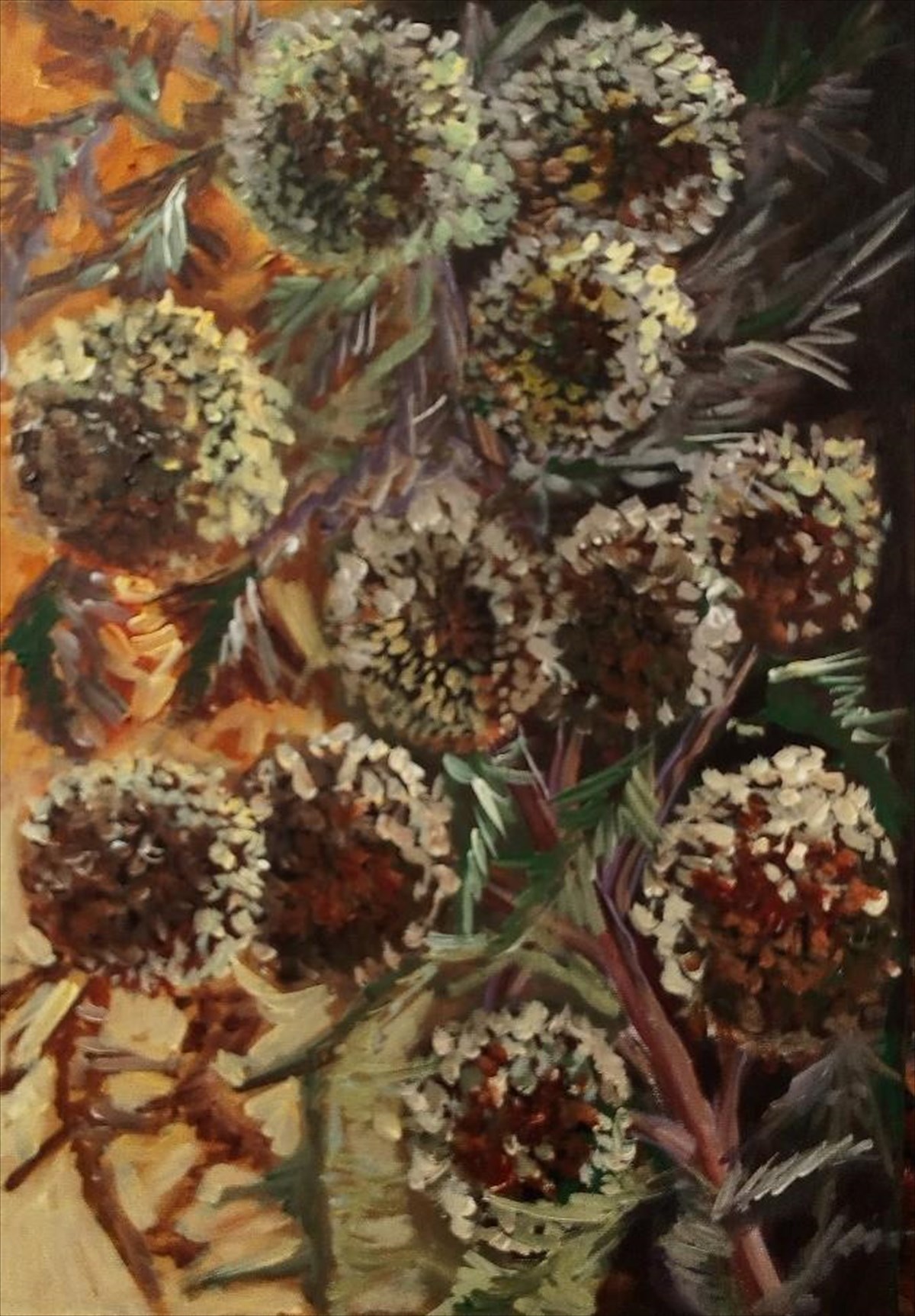 Στη νέα ενότητα έργων του Βαγγέλη Καρανάσιου, τα σαρκώδη φυτά ενός παράδοξου μακρινού παραδείσου και οι ντυμένες με άνθη γυναίκες που γαλήνια, χωρίς αιδώ, ακουμπούν τη γυμνότητά τους καταμεσής του βλέμματος, συμπλέκονται ως ιδεατοί τόποι επιθυμίας. Ως τόποι εφήμεροι και ψιθυριστικοί, κατάμεστοι από θροΐσματα θνήσκουσας ωραιότητας και ένσαρκης ανθοφορίας.
