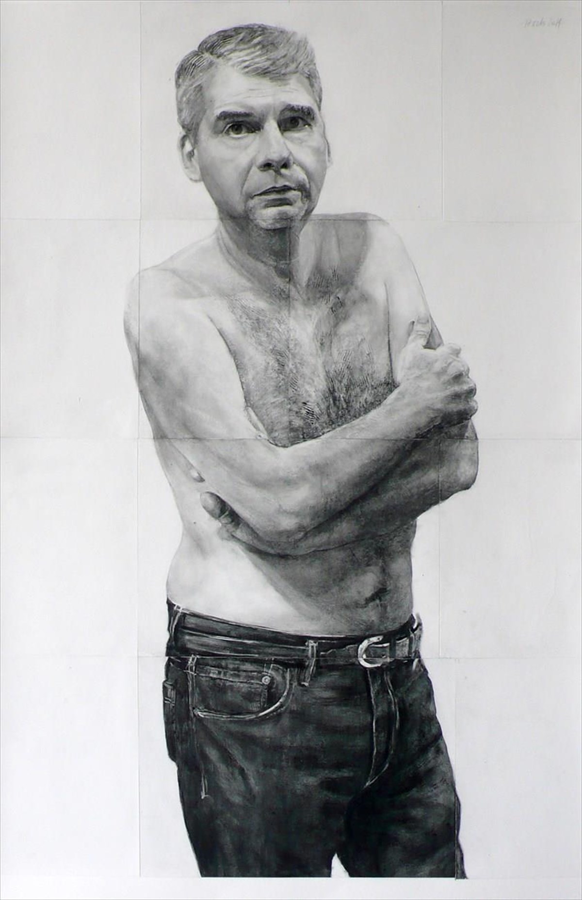 Μετά σε αλεπάλληλες διαστρωματώσεις από κάρβουνο και μαλακά μολύβια ως τις πιο λεπτές ασημένιες αποχρώσεις του γραφίτη ο ζωγράφος ενεργοποιεί όλη την υποδόρια αύρα σ’ αυτές τις μορφές. Τους απελευθερώνει δηλαδή έναν ιχνογραφημένο βιορυθμό που προκαλεί δέος στην παρατήρησή τους διατρέχοντας αυτή την ζωφόρο με τον παράδοξο και σκαμπρόζικο τίτλο «ΟΙ ΜΟΥΣΕΣ». Είναι μια ανατρεπτική θέση αμφισβήτησης και υπονόμευσης του καθιερωμένου αποδεκτού προτύπου του γυμνού ποθούμενου σώματος της γυναίκας «μούσας» του έρωτα και της τέχνης.