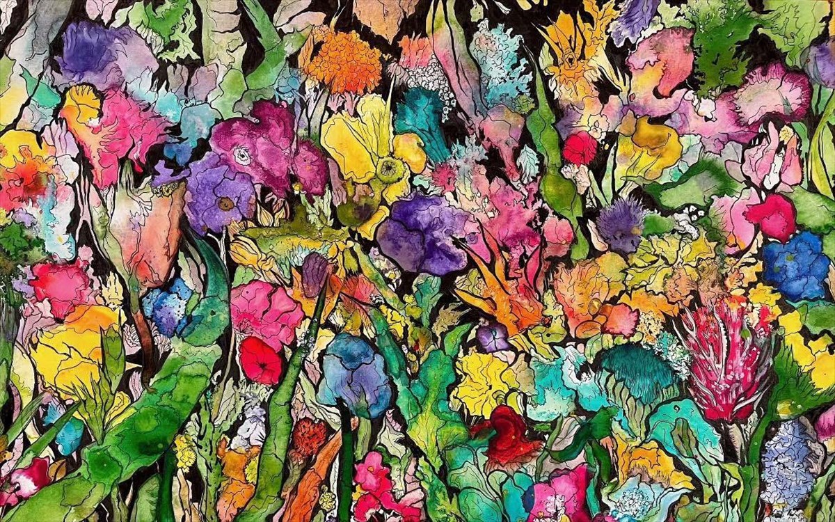 Προτείνοντας με τη νέα ενότητα έργων της «Symbioses» ένα εύθραυστο μα αυτάρκες καλειδοσκοπικό σύμπαν, ιδωμένο μέσα από έναν νοερό μεγεθυντικό φακό, η Χριστίνα Παρασκευοπούλου ζωγραφίζει αθέατες ιστορίες εδάφους και υπεδάφους, ενάλιων και παράλιων μυστικών τόπων, ηχογραφώντας με τον χρωστήρα της την άηχη μουσική τους, το ψιθυριστικό σκίρτημά τους, την παλλόμενή τους σιωπή. Καθώς η γραφίδα σύρεται απαλά στο χαρτί και το αραιωμένο μελάνι απλώνεται επιδέξια στη λευκή επιφάνεια δουλεμένο σαν υδατογραφία, σχήματα, χρώματα και μοτίβα γεννιούνται διαδοχικά και υπογραμμίζονται απαλά με την επίθετη χρήση λεπτού μαρκαδόρου, πλάθοντας αλληλένδετα σώματα, ατέρμονα νήματα και αειφόρα νοήματα με τον τρόπο μίας περίτεχνης χορογραφίας. Προτείνοντας εγκάρσιες εικόνες ανθεκτικής μικροσκοπικής ζωής με ανακυκλούμενα συστατικά και πρωτογενές οικολογικό μήνυμα. Χαράσσοντας επάλληλους λαβυρίνθους επώασης, ανθοφορίας και ύπαρξης, φθοράς και ανασύστασης. «Αν σκάψεις μέσα στο χώμα, αν αναδεύσεις την άμμο του βυθού, θα συναντήσεις μια ζωή ανέγγιχτη. Την ευθραυστότητα αυτή επιχειρώ να αγγίξω και να διατυπώσω. Την ευθραυστότητα αυτή που φέρει τη δική της μουσική και αέναη κίνηση και που συνεχίζει να υπάρχει παρόλο που την κακοποιούμε καθημερινά, ή που στην καλύτερη περίπτωση την προσπερνούμε», εξηγεί η ζωγράφος. Βυθίζοντας το βλέμμα στις πυκνές ζούγκλες της ζωγράφου, όπου άλλοτε φωλιάζει μια τίγρις ή ένα εξωτικό πουλί και όπου άλλοτε κεντρικό θέμα του έργου παραμένουν η ίδια η οργιαστική βλάστηση της φτέρης και οι ζωηρές εκπυρσοκροτήσεις των ανθισμένων λουλουδιών που μετατρέπονται σε αλλεπάλληλα χρώματα και αλληλένδετα μοτίβα, ανακαλούμε στον νου τον Henri Rousseau και τις δικές του παραμυθένιες ζούγκλες. Και ταυτόχρονα, αντιλαμβανόμαστε την προσηλωμένη επιθυμία, την αληθινή οικολογική ενσυναίσθηση και το συστημικό σχεδιαστικό άχθος που διέπουν το έργο της ζωγράφου. Τον ευαίσθητο οπτικό φακό της, τη διείσδυση του δικού της βλέμματος στα έγκατα της γης και στις αστικές σέρρες, τη μυστική χλωρίδα και την πανίδα της πόλης, τη μαεστρική μεγέθυνση της κλίμακας, την ποιητική της ύφανσης των περίτεχνων εξωτικών φυλλωμάτων που αγνοούν το αστικό παραπέτασμα. Την ενστικτώδη διάσωση του μονάκριβου εκείνου που χάνεται κι όμως εξακολουθεί να τραγουδά σιγανά και να ανθίσταται στην τρελή τροχιά του πλανήτη.