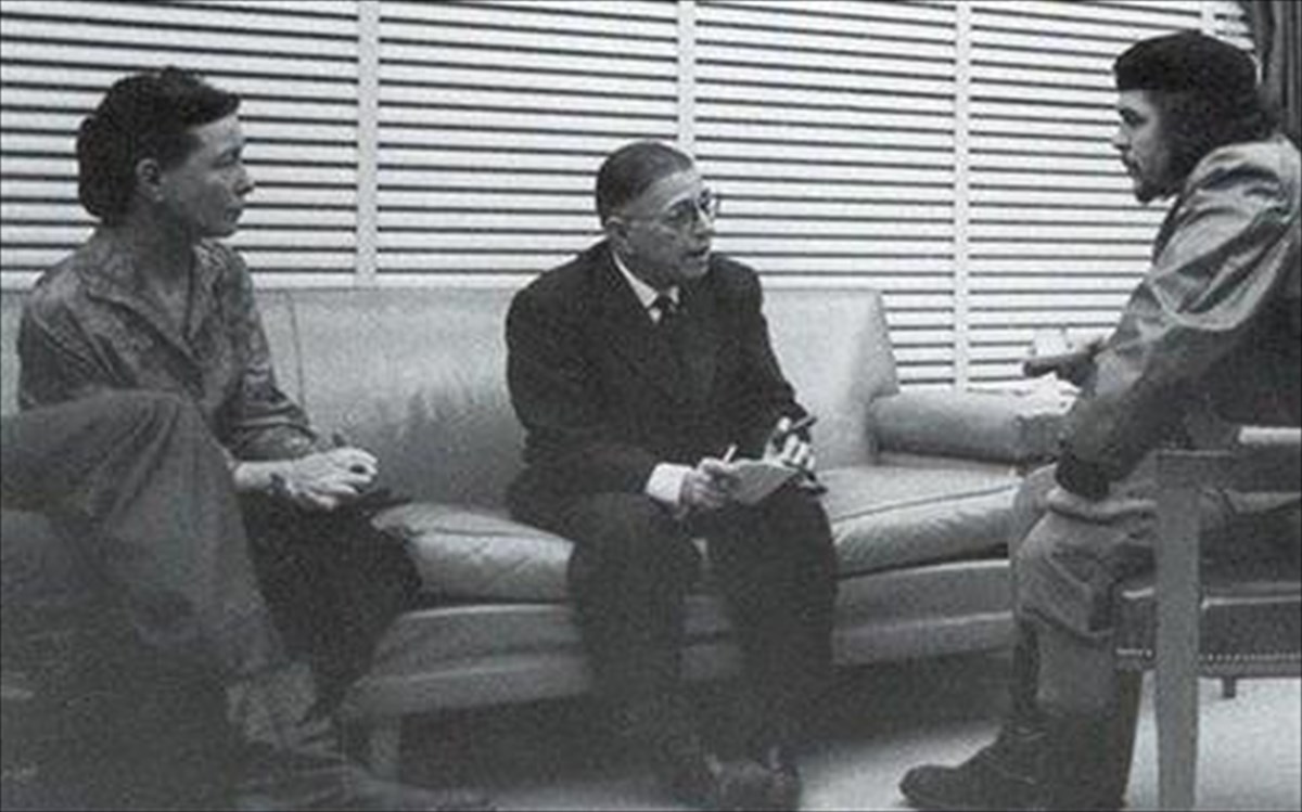 Η Σιμόν ντε Μπωβουάρ με τον Ζαν - Πωλ Σαρτρ σε συζήτηση με τον Τσε Γκεβάρα το 1960.