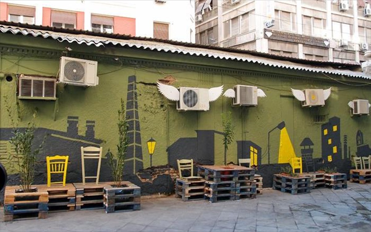H παραμελημένη οδός της Αθήνας μετατράπηκε σε ένα όμορφο πέρασμα. Οι τοίχοι βάφτηκαν, ζωγραφίστηκαν και πλέον φιλοξενούν μια τοιχογραφία με skyline πόλης. Παλέτες έχουν τοποθετηθεί ώστε να μπορεί ο κόσμος να κάθεται, φυτά ομορφαίνουν ακόμα πιο πολύ το τοπίο.