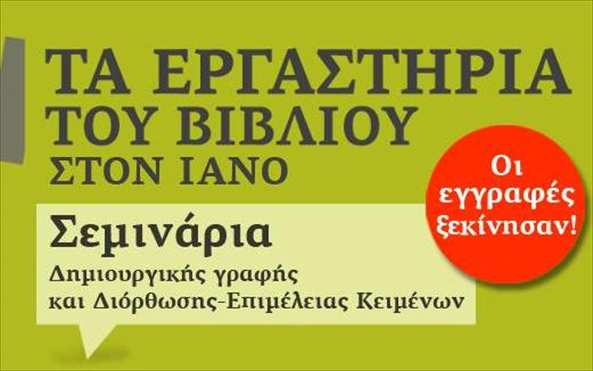 Το ζητήσατε και ο IANOS φρόντισε γι’αυτό! Μετά τους επιτυχημένους δύο κύκλους εργαστηρίων-σεμιναρίων δημιουργικής γραφής και διόρθωσης-επιμέλειας κειμένων, την άνοιξη και το φθινόπωρο του 2013, έρχονται νέες ενότητες σεμιναρίων.