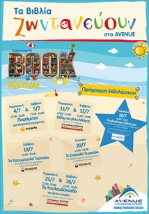 Το εμπορικό κέντρο AVENUE, αγκαλιάζοντας όλη την οικογένεια, που ακόμη δεν έχει φύγει για διακοπές, παρουσιάζει ένα σύνολο δημιουργικών εκδηλώσεων για μεγάλους και παιδιά, στο πλαίσιο του «Καλοκαιρινού Book Festival». Ο Ιούλιος, εκτός από μήνας εκπτώσεων, είναι και μήνας σημαντικών εκδηλώσεων.