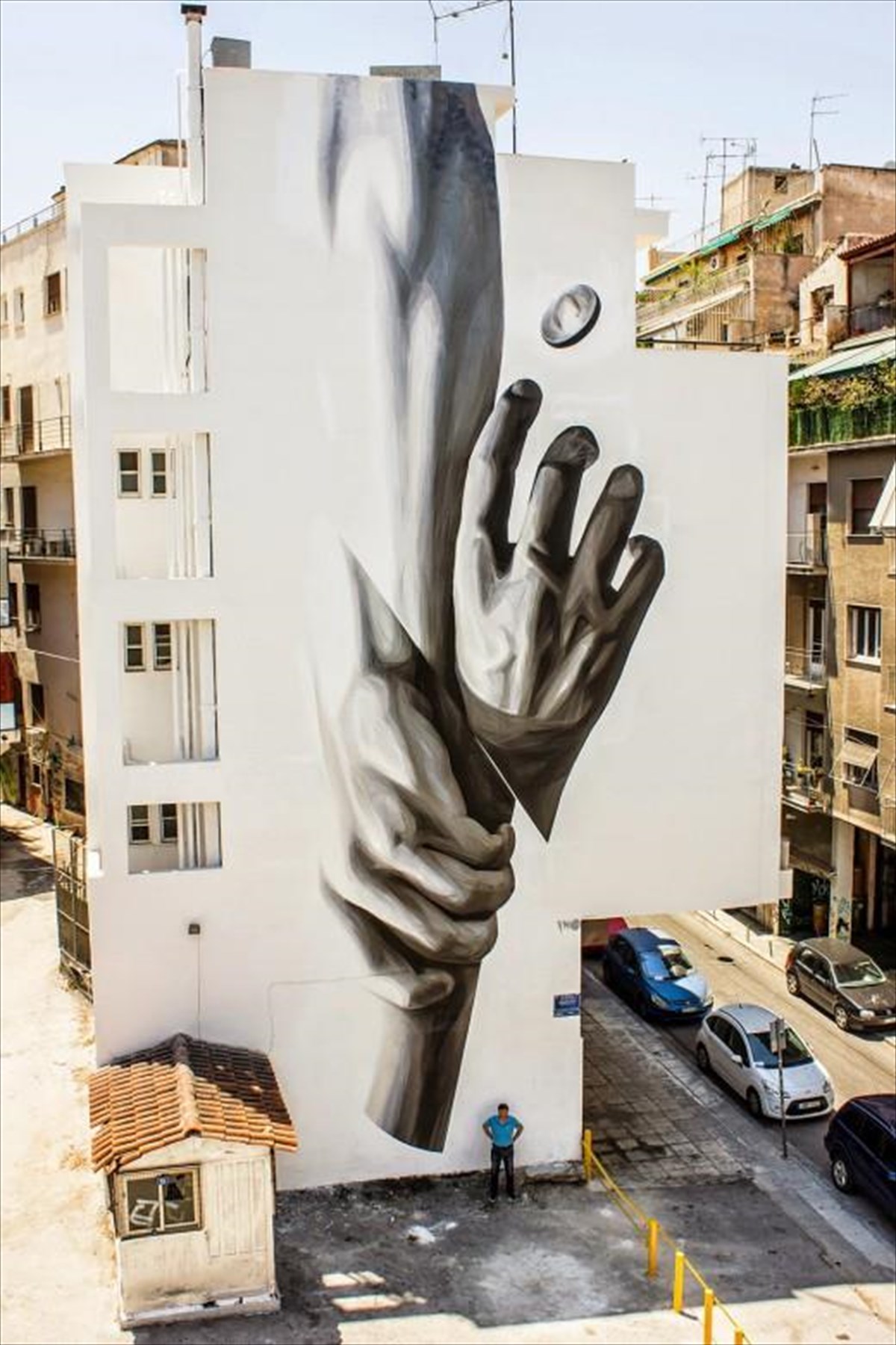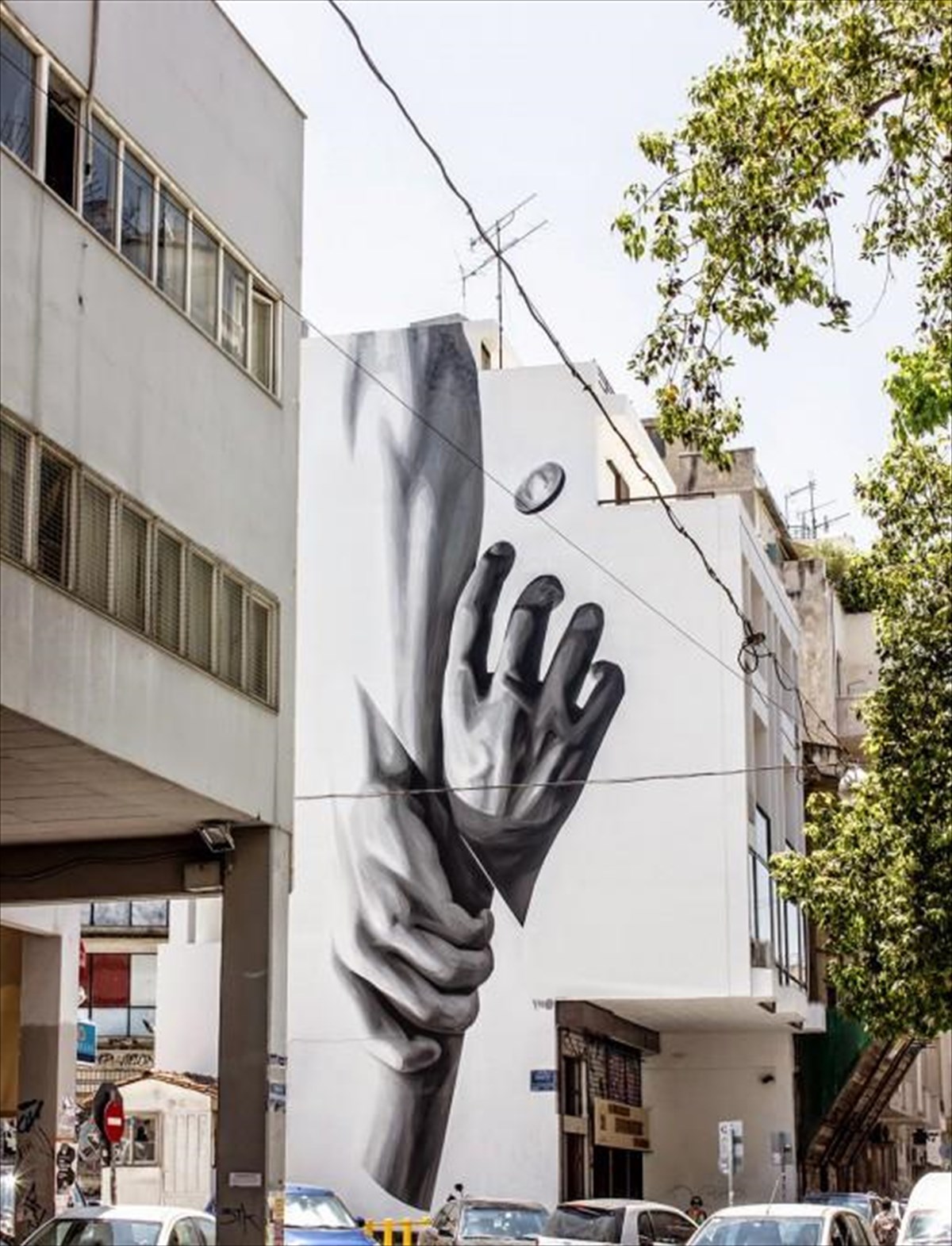 Ο πιο γνωστός street artist της Ελλάδας διάλεξε να μεταμορφώσει τη διασταύρωση των οδών Μπενάκη και Κωλέττη στη γειτονιά των Εξαρχείων.