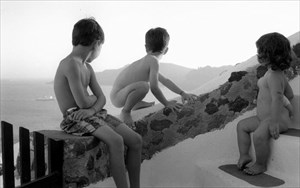 Ένα τραπέζι στρωμένο μπροστά στη θάλασσα που περιμένει την καλοκαιρινή παρέα, παιδικές πατούσες στα πλακόστρωτα της Σαντορίνης, η κάτασπρη μπουγάδα, ανέμελες παιδικές αναμνήσεις και πολλές πολλές ακόμα εικόνες από το καλοκαίρι στην Ελλάδα και πιο συγκεκριμένα στη Σαντορίνη.