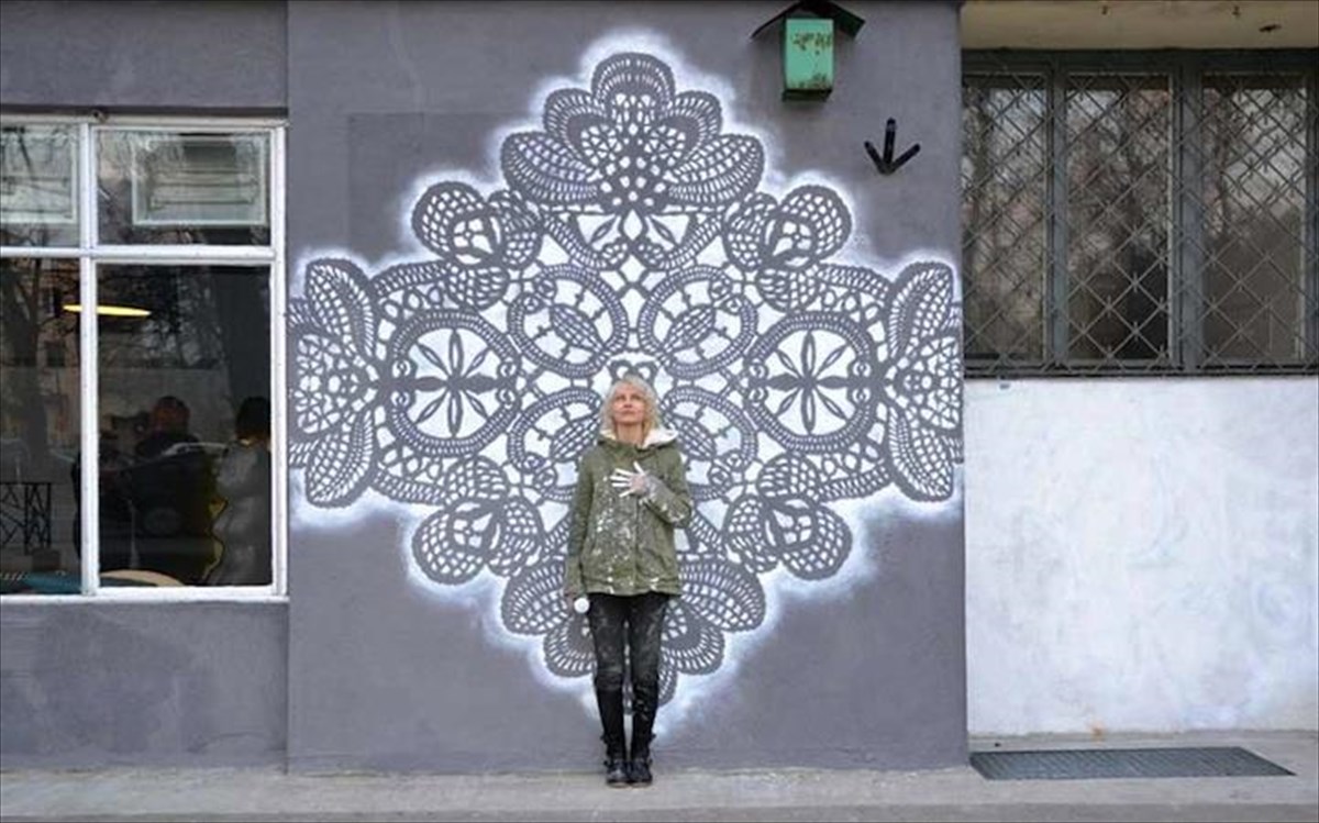 Η NeSpoon αφήνει το δικό της εικαστικό στίγμα με μοτίβα δαντέλας σε δρόμους, φανάρια, τοίχους, πόρτες, παρκόμετρα και σε άλλα αστικά σημεία.