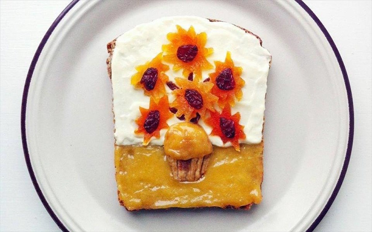 Τα Ηλιοτρόπια του Βαν Γκογκ, Το Κορίτσι με το Μαργαριταρένιο Σκουλαρίκια του Γιοχάνες Βερμέερ, Τα Νούφαρα του Μονέ και η Φρίντα Κάλο... στο πρωινό σας! Πώς θα σας φαινόταν, αν κάθε πρωι ξυπνούσατε με την τέχνη στο πιάτο σας; Οι διάσημοι πίνακες έχουν γίνει ανά καιρούς πηγή έμπνευσης για πολλούς καλλιτέχνες. Αυτή τη φορά αρκεί μια φέτα από ψωμί του τοστ και ότι άλλο βρήκε ο καλλιτέχνης στο τραπέζι του πρωινού. Καλή απόλαυση...