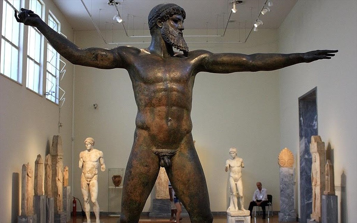 Το υπέροχο αυτό άγαλμα που έχει την μορφή του Δία ή του αδερφού του, Ποσειδώνα, είναι ένα από τα πιο υπέροχα αρχαία ελληνικά έργα τέχνης. Στην στάση αυτή, φαίνεται να είναι έτοιμος να πετάξει την τρίαινά του (αν είναι ο Ποσειδώνας) ή τον κεραυνό του (αν είναι ο Δίας). Το χάλκινο άγαλμα βρέθηκε μέσα στη θάλασσα, κοντά στο Αρτεμίσιο, από σφουγγαράδες.