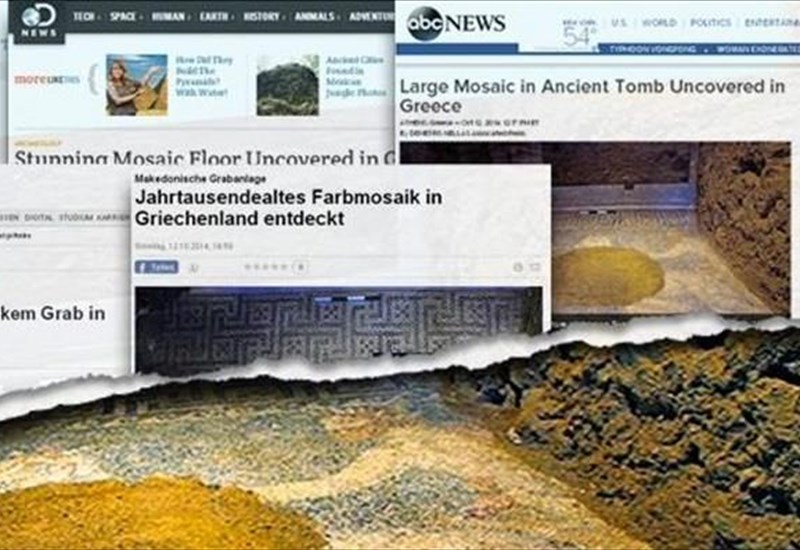 Σήμερα κατά την αφαίρεση και των τελευταίων στρωμάτων χώματος από την ανατολική πλευρά του ψηφιδωτού, αποκαλύφθηκε η τρίτη μορφή της παράστασης, πίσω από τον γενειοφόρο άνδρα, ο οποίος - εκτός από το στεφάνι - φοράει και κόκκινο ιμάτιο.