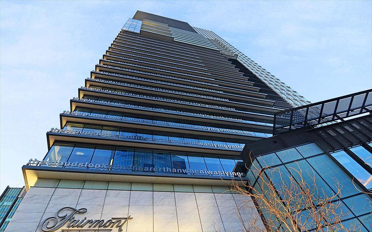 Το Fairmont Pacific Rim Hotel στο Βανκούβερ είναι καλυμμένο με κείμενο σχεδιασμένο από το Βρετανό καλλιτέχνη Liam Gillick. Το κείμενο λέει: «Lying on top of a building, the clouds looked no nearer than when I was lying in the street».