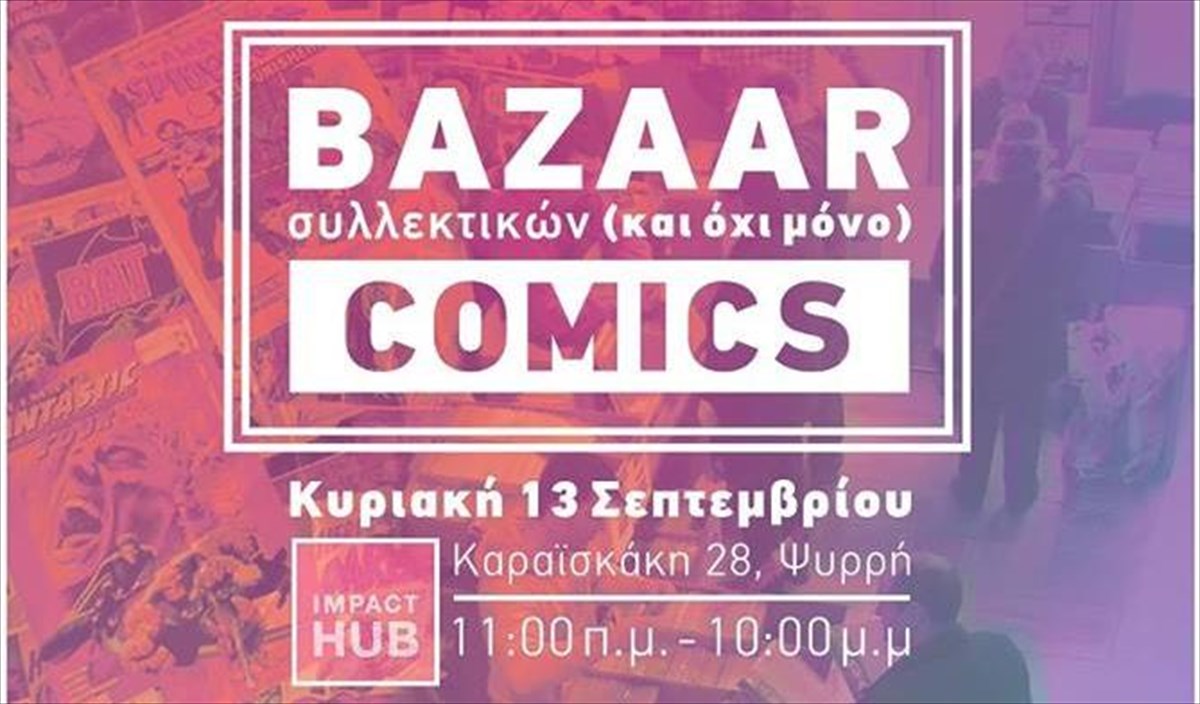 Εμπλουτίζουμε και ανανεώνουμε τις συλλογές comics σε ένα bazaar την Κυριακή 13/9 στην αυλή του Impact Hub Athens.