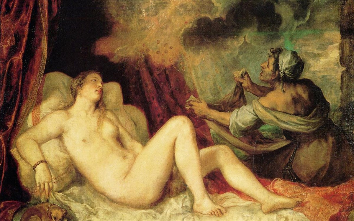 Μια γυναίκα ετοιμάζεται να κάνει έρωτα με έναν θεό σε αυτό το μαγικό πίνακα. Ο Δίας εμφανίζεται στη Δανάη με τη μορφή χρυσής βροχής. Ακόμα και σήμερα, ίσως να μην υπάρχει πιο αισθησιακή σκηνή από αυτή. Ο Τιτσιάνο εδώ καταφέρνει να ανυψώσει το θέμα του σεξ σε ολόκληρη θρησκεία.