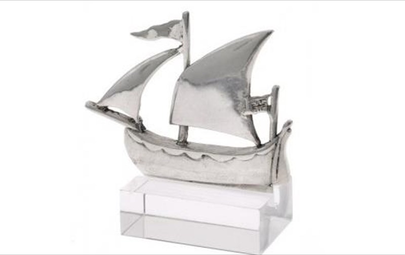 Επιτραπέζιο γούρι με πλοίο εμπνευσμένο από αρχαία κυκλαδική βραχογραφία, € 40,00