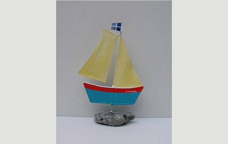 Επιτραπέζιο γούρι με πλοίο εμπνευσμένο από αρχαία κυκλαδική βραχογραφία, € 20,00