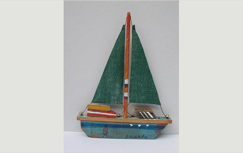 Καραβάκι του καλλιτέχνη Αντώνη Καστρινάκη, που παρουσιάζει μέρος της δουλειάς του στο Κέντρο γαία του Μουσείου
