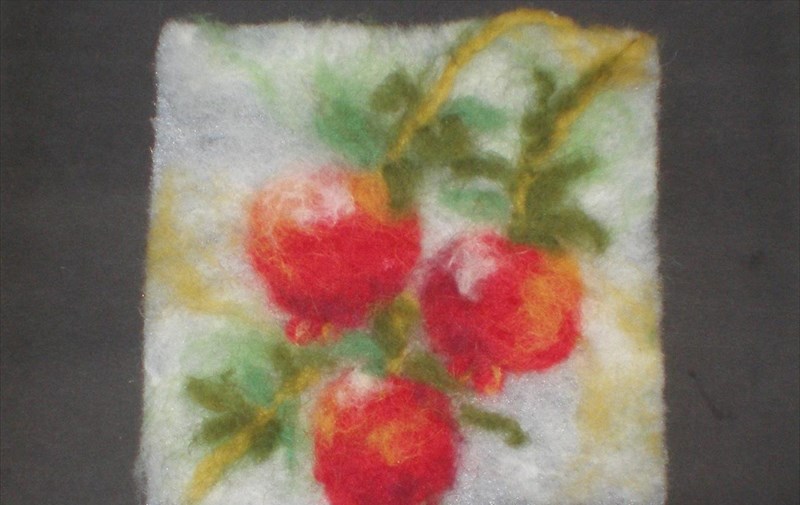 Διακοσμητική σύνθεση ροδιά, τεχνική Φελτ, Ζιάκα Βασιλική, 60 ευρώ