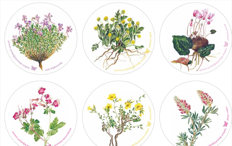 Σετ από 6 σουβέρ με απεικονίσεις λουλουδιών φιλοτεχνημένες από την Κυρία Νίκη Γουλανδρή, 7€