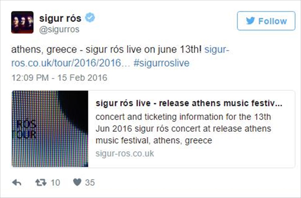 Δυναμικά ξεκινάει την πρώτη διοργάνωση του Release Athens Festival αφού μετά τους Beirut μαθαίνουμε πως και οι Sigur Rós θα παίξουν για το ελληνικό κοινό στο πλαίσιο του νέου φεστιβάλ. Όπως ανακοίνωσαν στους λογαριασμούς τους στα social media, οι Sigur Rós θα εμφανιστούν στην Αθήνα τη Δευτέρα 13 Ιουνίου. Το live θα γίνει στην Πλατεία Νερού ενώ μένει πλέον να ενημερωθούμε για το πώς θα διαμορφωθούν οι τιμές των εισιτηρίων.
