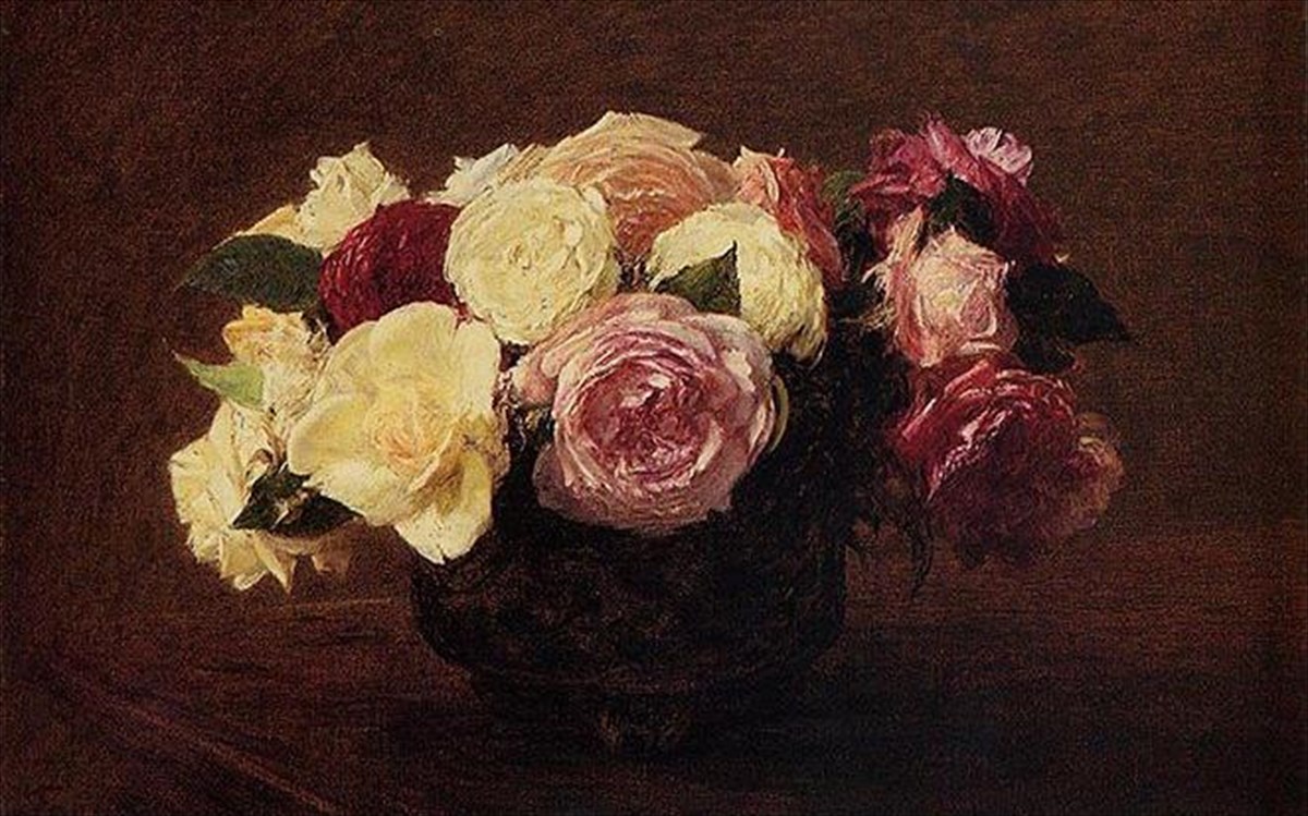 Ο Fantin-Latour υπήρξε διάσημος για τα τριαντάφυλλά του, το θεμα που τον ενέπνευσε από την αρχή μέχρι το τέλος της καλλιτεχνικής πορείας του. Η λατρεία του για τα τριαντάφυλλα ήταν μάλιστα τόσο μεγάλη ώστε να δοθεί το όνομά του σε ένα από αυτά. Ο συγκεκριμένος πίνακας φιλοξενεί ένα βάζο με κάθε λογής τριαντάφυλλο: λευκά, ροζ, κόκκινα, πορτοκαλί, ανθισμένα, ώριμα, πεταλωτά, πυκνά, όλα μαζί συνθέτουν το ανοιξιάτικο και μοσχοβολιστό "περιβόλι" του Fantin-Latour, το οποίο μέχρι και ο Marcel Proust είχε τιμήσει μέσα από τα γραπτά του. Oι ανθοσυνθέσεις του Γάλλου ζωγράφου ήταν τόσο δημοφιλείς που ξεπουλούσαν σχεδόν τη στιγμή που τις ολοκλήρωνε.