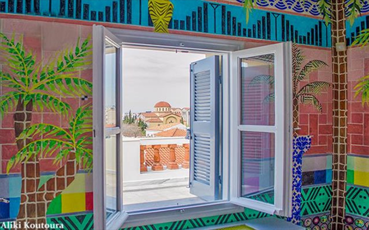 Eίναι το καλύτερο studio που είχα ποτέ! Ο ήλιος δίνει απίθανη ενέργεια και η θέα είναι τόσο επιβλητική που σχεδόν σε απειλεί. Το σημείο που βρίσκεται το Μπενάκη καφέ έχει κάτι το μοναδικό, καθώς από τη βεράντα βλέπεις τα πολλά πρόσωπα της πόλης: την Ακρόπολη και την παλιά Αθήνα, τα αρχαία ερείπα και το βιομηχανικό κομμάτι (σς. Γκάζι), το κέντρο και οι «φτωχογειτονιές», τα προάστια, όλα στα πόδια σου με μια στροφή 180 μοιρών. Είναι αδύνατον να συγκριθεί αυτό που συμβαίνει έξω από το παράθυρο, η Αθήνα είναι μια βασίλισσα που δεν μπορώ να συναγωνιστώ. Εγώ απλώς προσπάθησα να προσθέσω μια ακόμα διάσταση στην πολύπλευρη πόλη δημιουργώντας μια μικρή «όαση» στην καρδιά της.