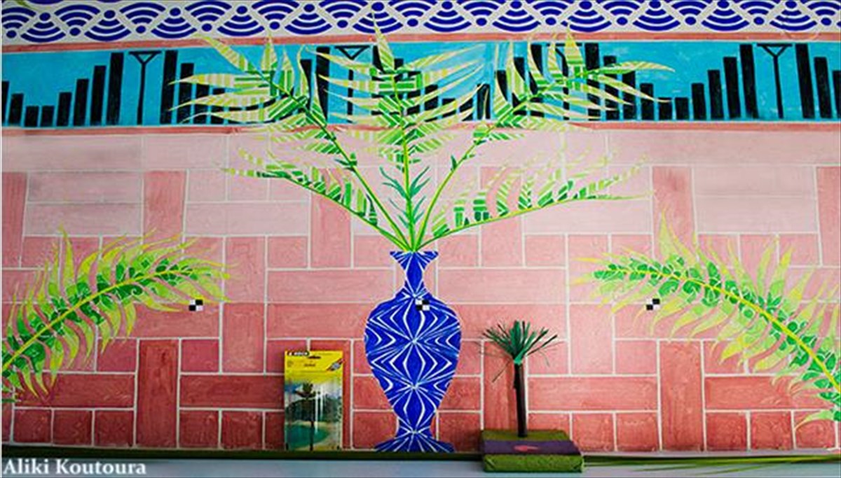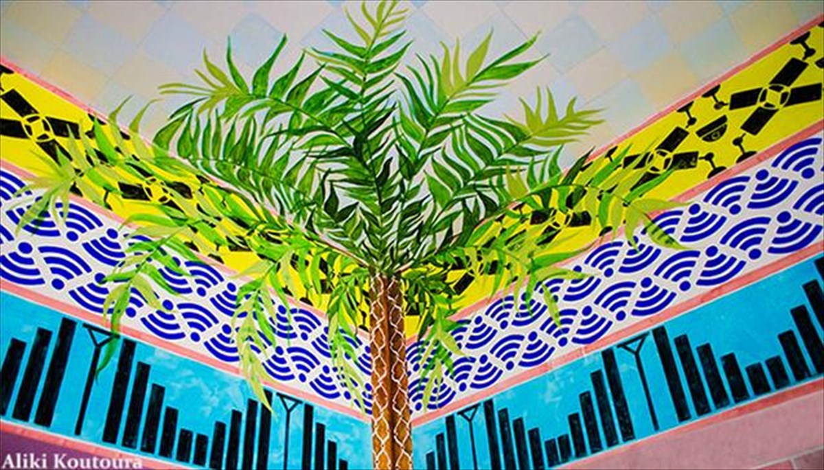 Όλοι οι φοίνικες της τοιχογραφίας έχουν έντονους φλοιούς ώστε να παραπέμπουν στην έννοια της περίφραξης. Υπάρχει δηλαδή σαφής αναφορά του έργου στην ιδέα ότι άνθρωποι κρατούνται με το ζόρι είτε εκτός είτε εντός. Ο φοίνικας συμβολίζει επίσης το καταφύγιο. Όλα αυτά είναι αναφορές μέσα από τις οποίες μπορούμε να σκεφτούμε την πόλη στην παρούσα φάση της, ωστόσο θεωρώ ότι είναι στο χέρι του θεατή να ενώσει τις βούλες και να αποφασίσει τι θα του μείνει τελικά από το έργο.