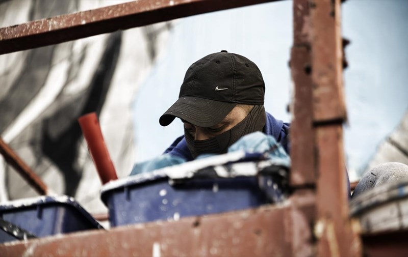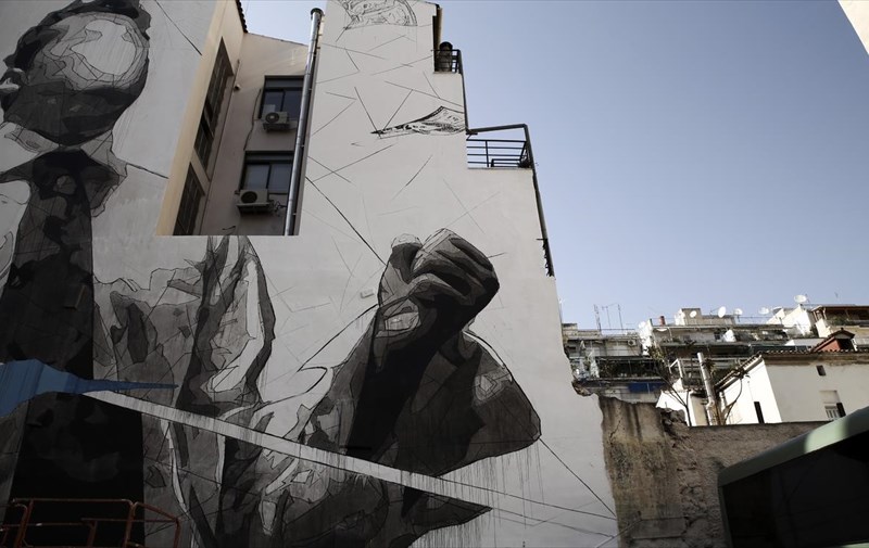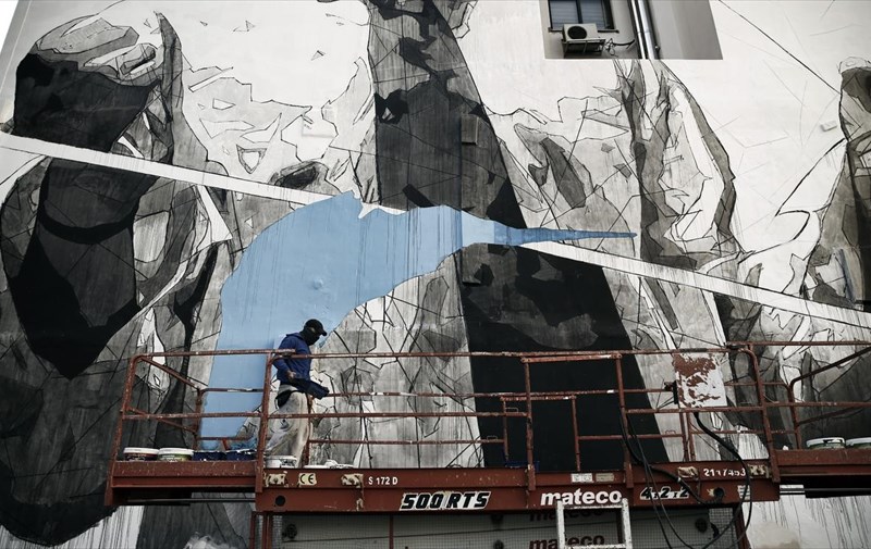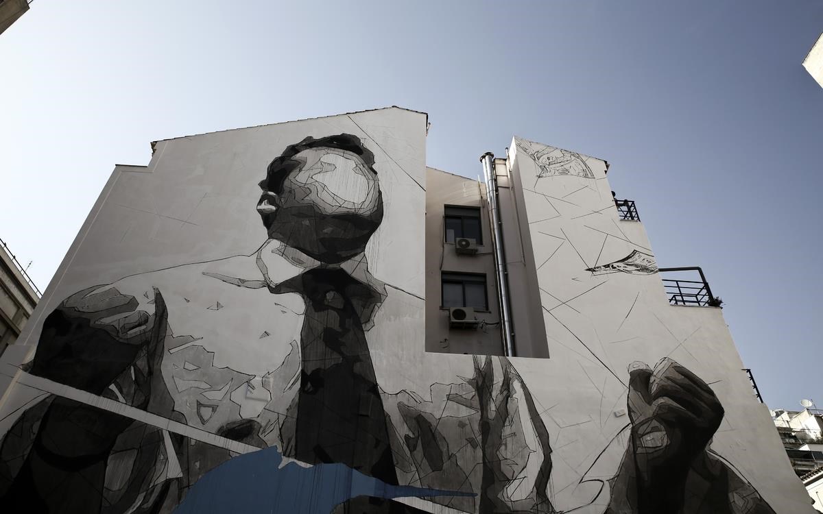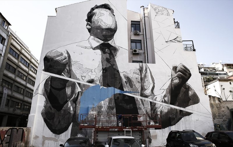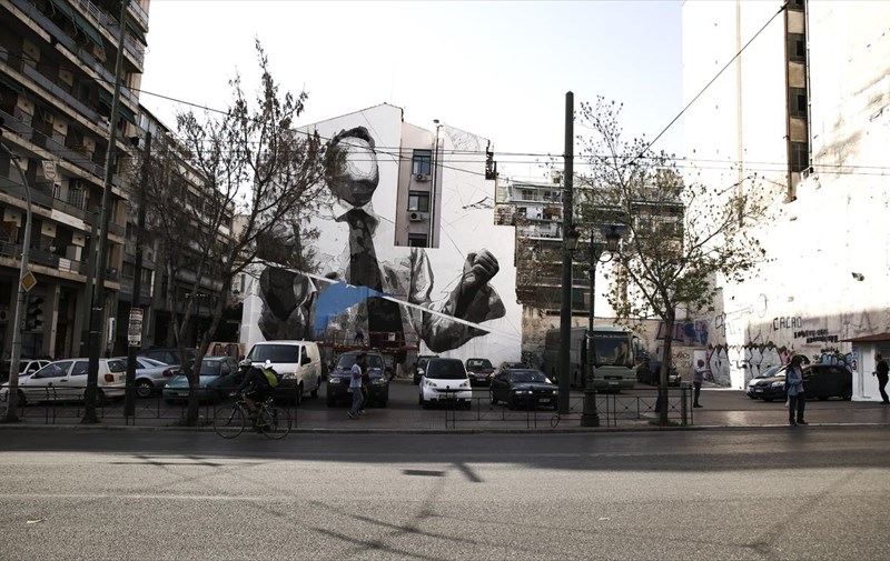 Menelaos Myrillas / SOOC / Menelaos MyrillasGraffiti artist INO finishing up his latest Graffiti in Down Town Athens, on Apr. 4, 2016 / Ο ΙΝΟ τελειώνει ένα γκράφιτι στο κέντρο της Αθήνας, στις 4 Ααπριλίου, 2016