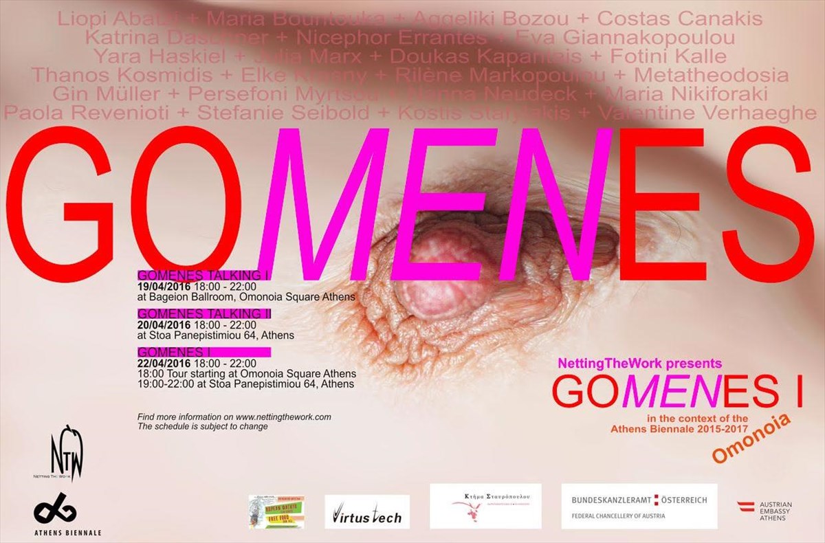 Το Netting The Work είναι μια πολυμορφική εικαστική πλατφόρμα που δρα μεταξύ Ελλάδος και εξωτερικού και έχει ιδρυθεί από τις καλλιτέχνιδες Rilène Markopoulou και Εύα Γιαννακοπούλου. Ο όρος GOMENES, γνώριμος στους χρήστες της ελληνικής, συνδυάζει ένα σύνολο εννοιών, άμεσα συνδεδεμένων με ζητήματα. Η υποτιμητική διάσταση συνυπάρχει με την προκλητική εννοιολογική χροιά ενώ παράλληλα θεωρείται ως “μη ορθός πολιτικά” όρος. Την ίδια στιγμή χρησιμοποιείται ευρέως ως λέξη που μπορεί να αποπνέει οικειότητα χωρίς να θεωρείται απαραίτητα αρνητική, ειδικά μεταξύ νέων.