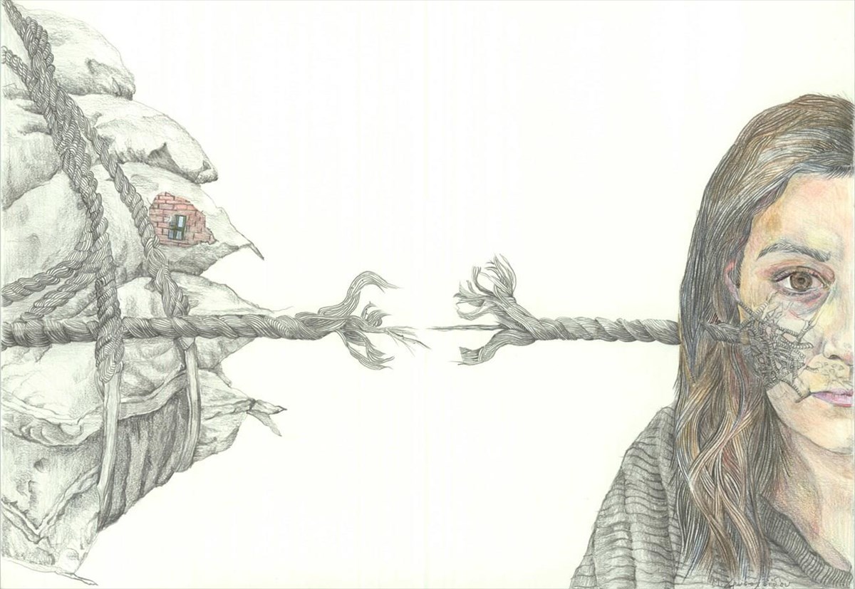 Αν και οι καταστάσεις παρουσιάζονται όπως τις ζει ο πρωταγωνιστής, σκόπιμα ο ίδιος απουσιάζει και τη θέση του παίρνουν οικεία πρόσωπα που ακροβατούν ανάμεσα σε στυλιζαρισμένες άρτιες αναπαραστάσεις με στόχο να υπερτονίσουν το χάος. Το συναίσθημα ως ατόφια έκφραση παρουσιάζεται μέσα από τις παιδικές φιγούρες οι οποίες δεν σταματούν να θέτουν ερωτήματα. Το μολύβι κυριαρχεί υπογραμμίζοντας την εύθραυστη και μετέωρη πορεία για να δώσει έπειτα τη θέση του στο χρώμα μετουσιώνοντας το δίλημμα σε δράση. Κάπως έτσι προορισμός του ταξιδιού μοιάζει η απόφαση, σωστή ή λάθος, που το αδιέξοδο επιβάλει να πάρει.