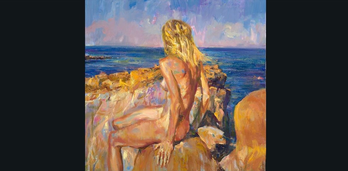 Το φυσικό τοπίο του νησιού αποτελεί το πλαίσιο στο οποίο ο ζωγράφος αποδίδει αβίαστα την αφήγησή του.