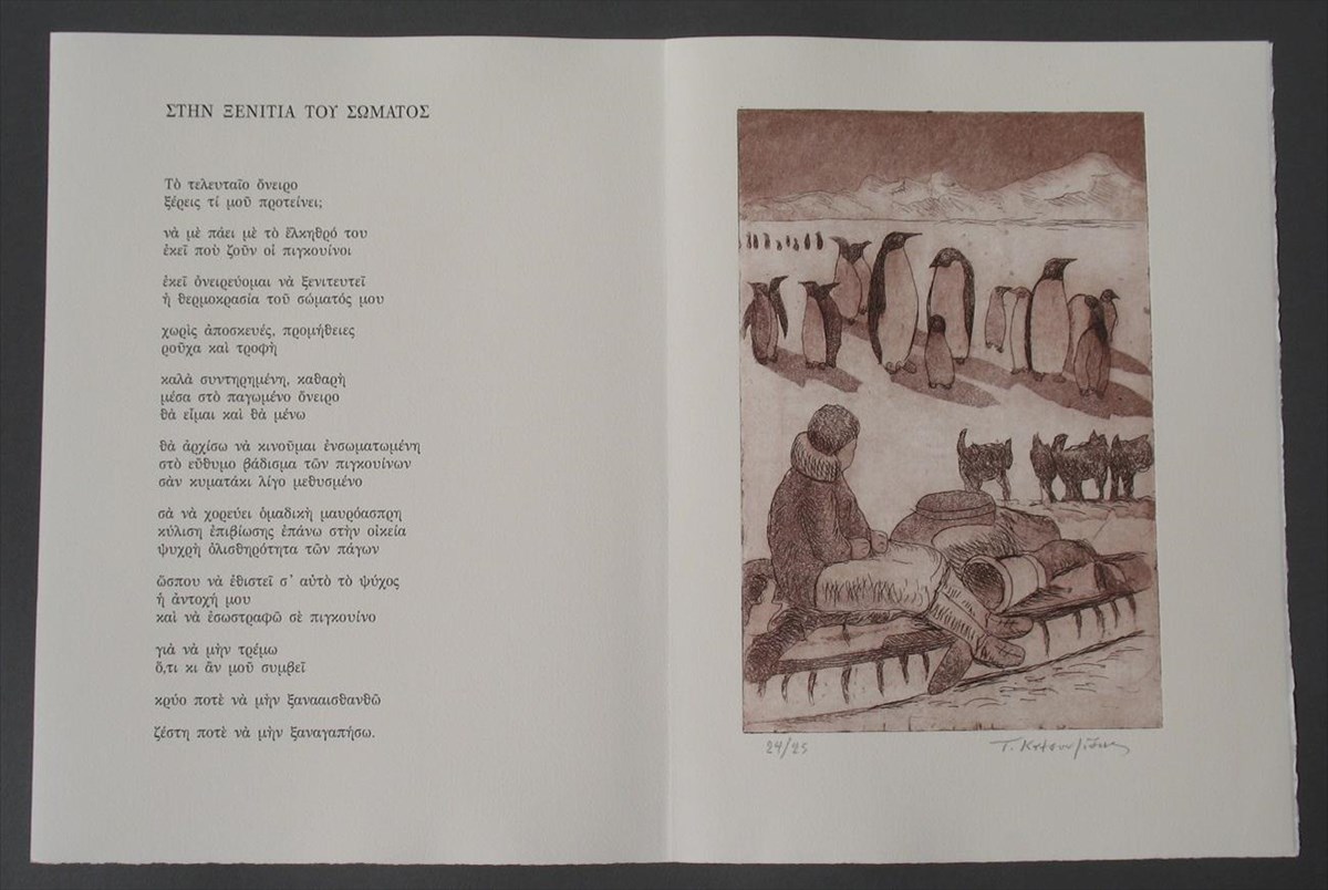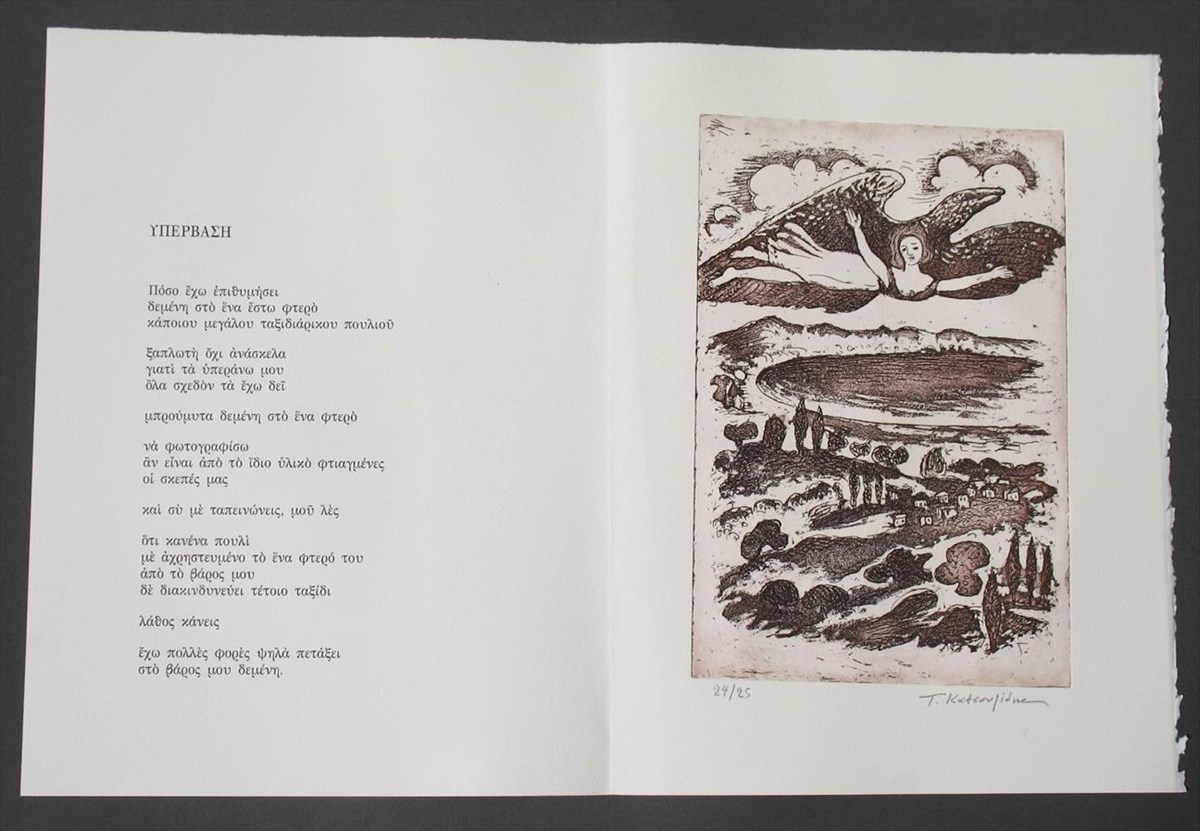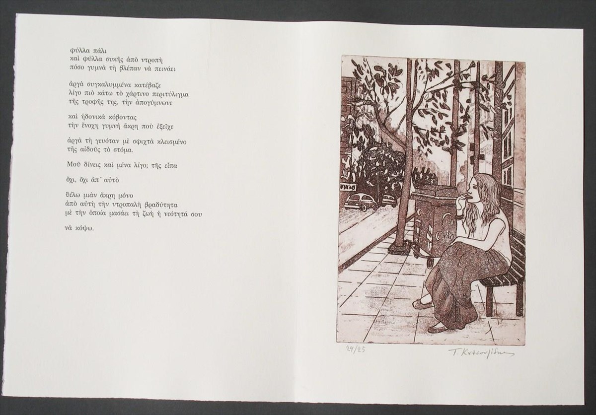 Ο διεθνώς αναγνωρισμένος χαράκτης Τάκης Κατσουλίδης επέλεξε και εικονογράφησε με την τέχνη της χαλκογραφίας 7 ποιήματα της σπουδαίας Ελληνίδας ποιήτριας Κικής Δημουλά από το βιβλίο Εύρετρα. Τα ποιήματα παρουσιάζονται με τη γραμματοσειρά Bodoni, ανασχεδιασμένη από τον ίδιο τον χαράκτη. Το λεύκωμα εκδίδεται σε 25 αριθμημένα και υπογεγραμμένα αντίτυπα από τα οποία μόνο τα 20 θα διατεθούν στο κοινό.