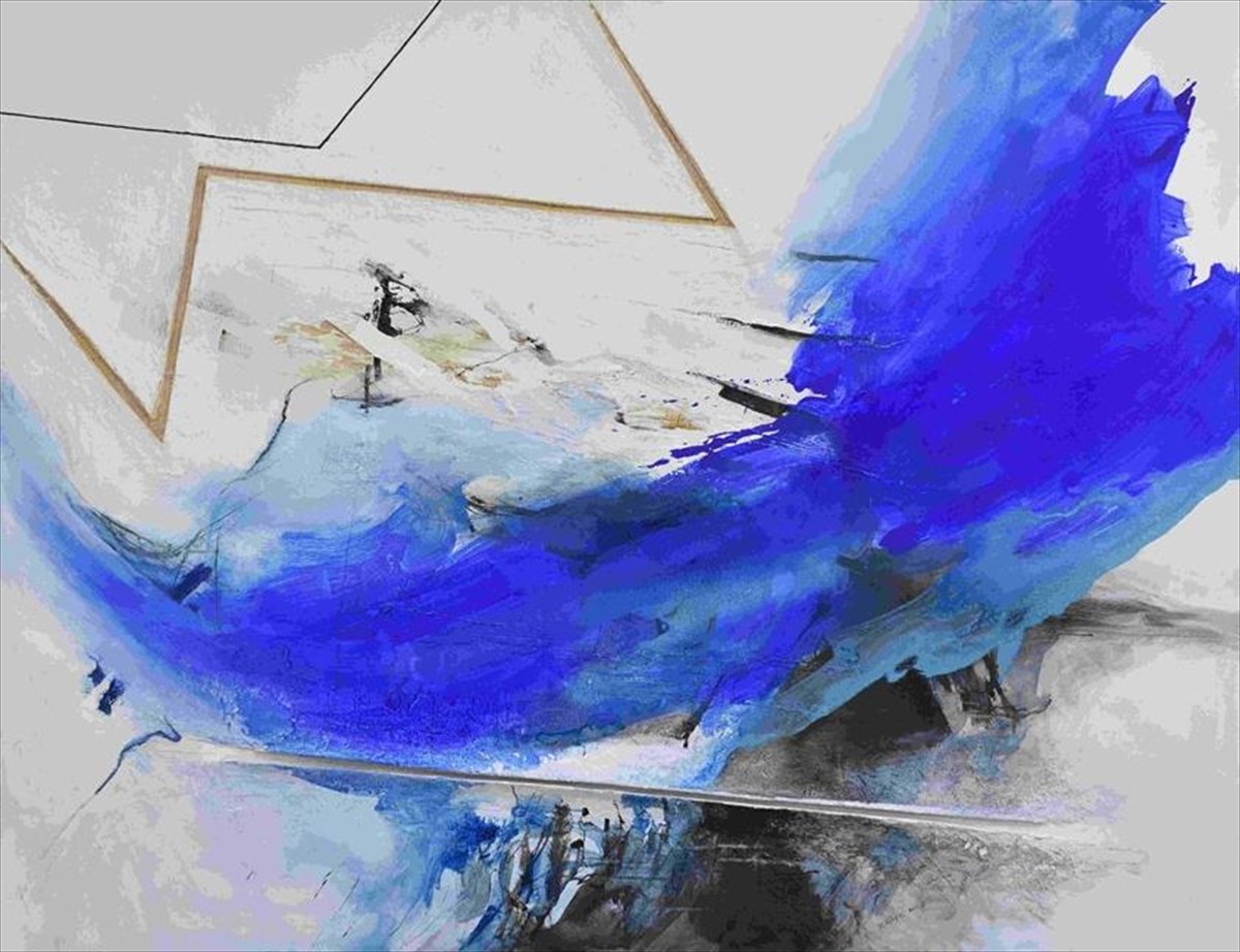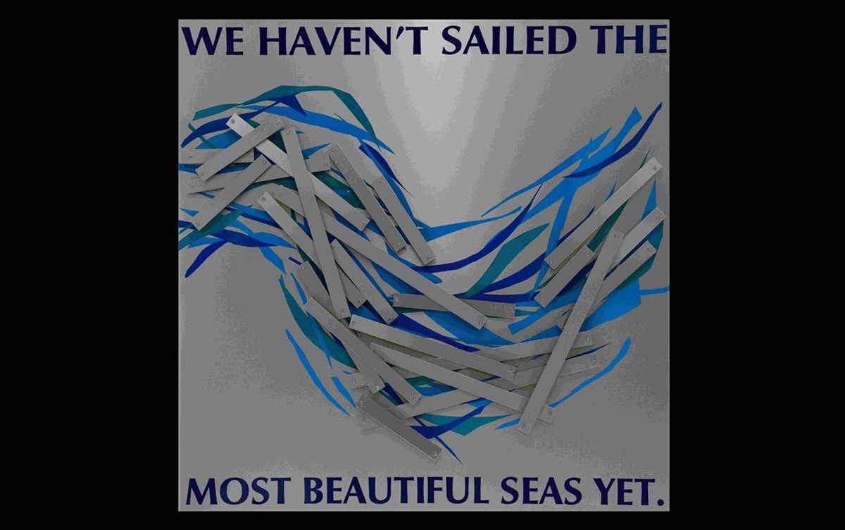 Ο ζωγράφος επικεντρώνει αυτή τη φορά το ενδιαφέρον του στο Αιγαίο, «μια θάλασσα έμπνευσης», όπως το ονομάζει. Νέα ζωγραφικά και εννοιολογικά έργα προκύπτουν καθώς τα χρώματα μπλέκονται μοναδικά με σκέψεις και διατυπώσεις που συχνά κρύβονται στα κύματα του Στέργιου Στάμου. Τα μπλε χρώματα σε μια δυναμική παλέτα κυριαρχούν, ενώ τα κείμενα είναι άλλοτε ευανάγνωστα και άλλοτε όχι.