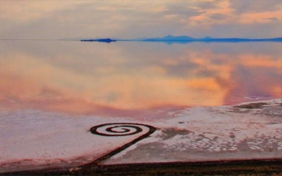 Repetto Gallery / Gianfranco GorgoniΈνα από τα σπουδαιότερα έργα του Robert Smithson, το «Spiral Jetty», βρίσκεται στην βορειοανατολική ακτή της Μεγάλης Αλμυρής Λίμνης στην Γιούτα των ΗΠΑ. Έχοντας κουραστεί από τη συμβατικότητα της τέχνης που προορίζεται για τις γκαλερί, ο Smithson και συνάδελφοι του, όπως ο Michael Heizer, η Nancy Holt και ο James Turrell στράφηκαν στην φύση για υλικά και δημιούργησαν έργα με τη γη και το φως. Μέσα σε μόλις έξι μέρες, με τη βοήθεια ενός τοπικού εργολάβυο, ο Smithson δημιούργησε μια τεράστια σπείρα από κρυστάλλους άλατος, λάσπης, νερού και μελανόλιθψν που εκτείνεται περίπου 500 μέτρα μέσα στην κοκκινωπή λίμνη. Το έργο εμφανίζεται και εξαφανίζεται ανάλογα με στάθμη των υδάτων και φαίνεται ολόκληρο μονάχα από ψηλά.