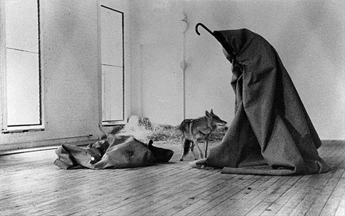 Ο Γερμανός καλλιτέχνης Joseph Beuys πρέσβευε ότι ο κάθε άνθρωπος είναι καλλιτέχνης και ότι η τέχνη έχει ζωτική σημασία στην κοινωνική ζωή. Στην performance (ή «δράση», όπως τις αποκαλούσε) «I Like America and America Likes Me» o Beuys ταξίδεψε στην Νέα Υόρκη και στο αεροδρόμιο τον υποδέχτηκαν φίλοι του οι οποίοι τον τύλιξαν σε τσόχα, προτού τον οδηγήσουν με ασθενοφόρο στην René Block Gallery. Εκεί, για οχτώ ώρες την ημέρα, για τρεις μέρες, μοιραζόταν ένα δωμάτιο με μια τσόχα, ένα ζευγάρι γάντια, μια μαγκούρα, τα καθημερινά φύλλα της Wall Street Journal και ένα ζωντανό κογιότ. Όλο αυτό το διάστημα το ζώο αγρίευε με την τσόχα και κατουρούσε τις εφημερίδες, αλλά τελικά άφηνε τον Beuys να τον αγκαλιάζει. Αφού πέρασαν οι τρεις μέρες, ο Beuys ξανατυλίχτηκε στην τσόχα και επέστρεψε στο αεροδρόμιο, έχοντας πετύχει τον στόχο του: να μην ακουμπήσει το αμερικανικό έδαφος.
