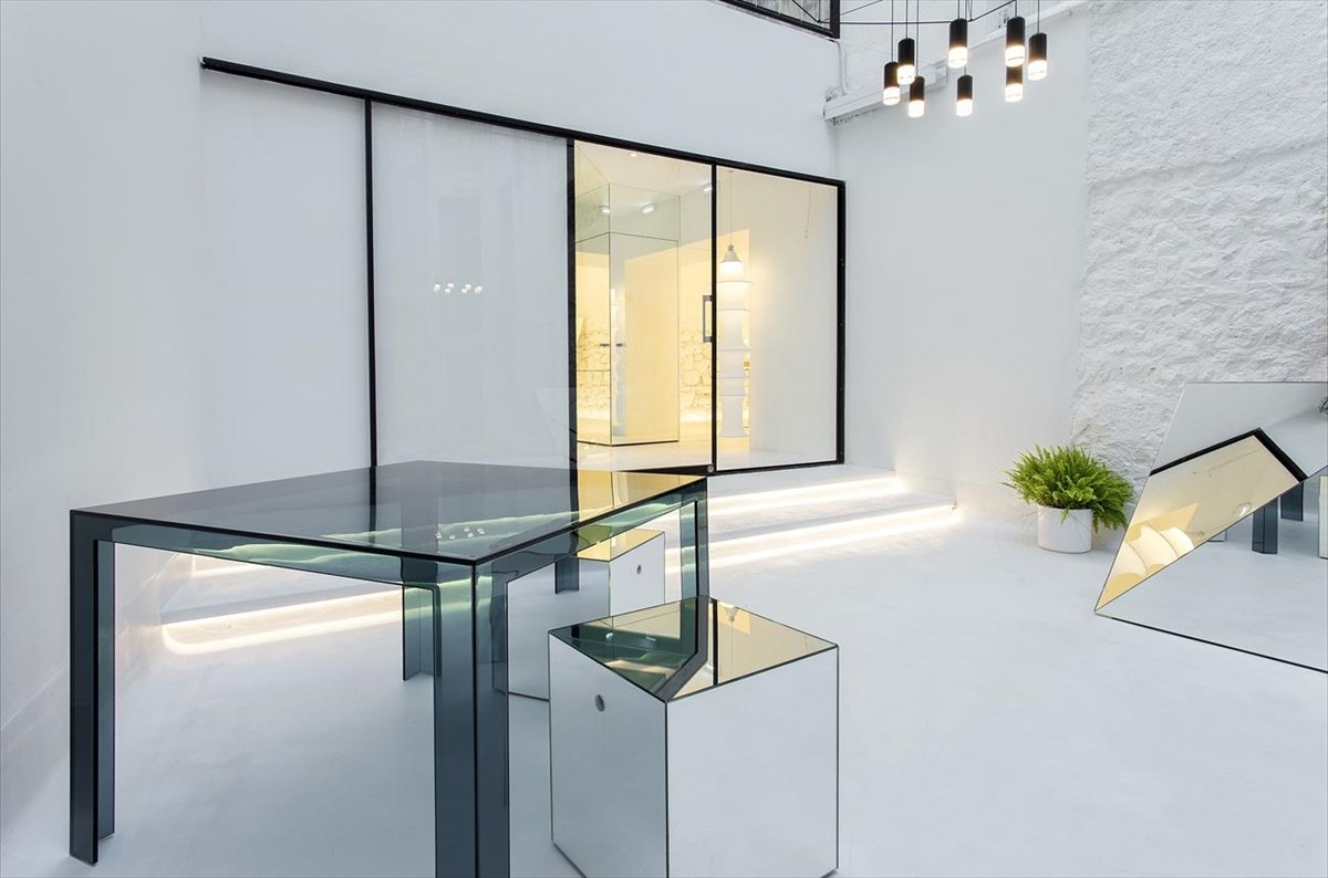 ΦΩΤΟΓΡΑΦΊΕΣ ΠΑΝΑΓΙΏΤΗΣ ΒΟΥΜΒΆΚΗΣΤο κατάστημα οπτικών "Optimist", συνολικής επιφάνειας 90m2, βρίσκεται στο ισόγειο ενός διατηρητέου κτηρίου του μεσοπολέμου, στο κέντρο της Χαλκίδας. Ο βασικός άξονας σχεδιασμού ήταν η δημιουργία μιας διαβάθμισης της υφής, της στιλπνότητας των υλικών και του τρόπου που αυτά αντανακλούν ή απορροφούν το φως. Η διαβάθμιση αυτή επεκτείνεται και στην επιλογή των υλικών, ειδικά ως προς τον τρόπο με τον οποίο αυτά τείνουν να υπάρχουν εμφατικά ή να σβήνουν στον χώρο. Κάποια χρηστικά αντικείμενα μετασχηματίζονται σε πρισματικά γλυπτά.