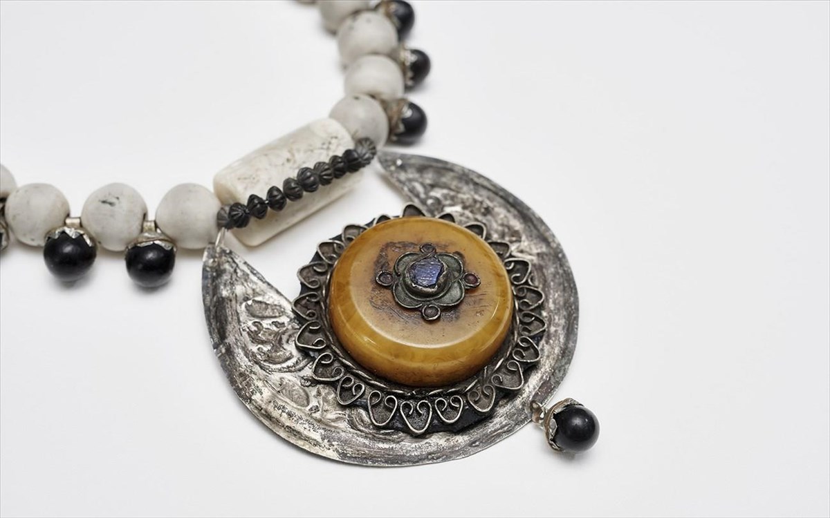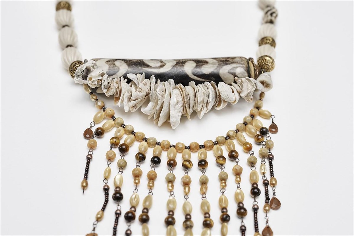 Με στοιχεία από τις εικαστικές παραδόσεις της Υποσαχάριας Αφρικής και την επιλεκτική αφαιρετικότητα της αφρικανικής τέχνης. Κοσμήματα με κύρια υλικά το ξύλο και το κόκκαλο, με έντονο συμβολικό χαρακτήρα, καθώς η σημασία του καθενός είναι μοναδική και ανεπανάληπτη. - Παραδοσιακά