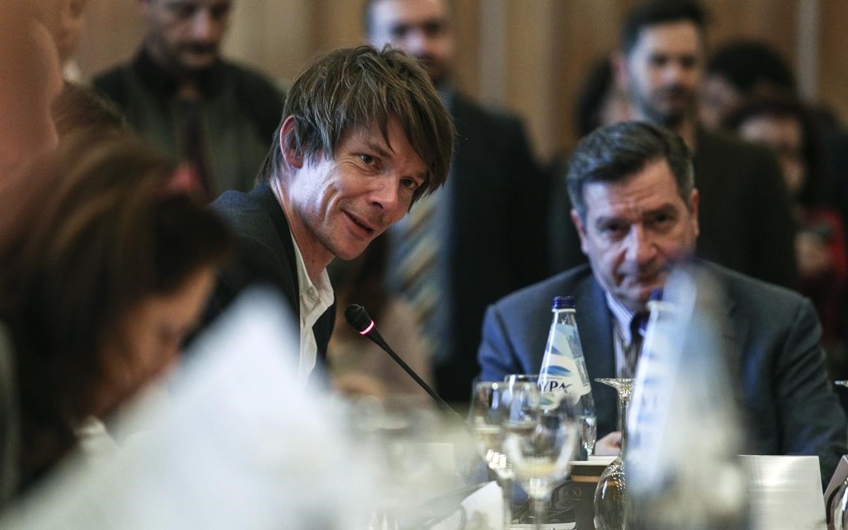 O καλλιτεχνικός διευθυντής της documenta 14 Adam Szymczyk και ο Δήμαρχος της Αθήνας Γιώργος Καμίνης σε κοινή συνέντευξη Τύπου.