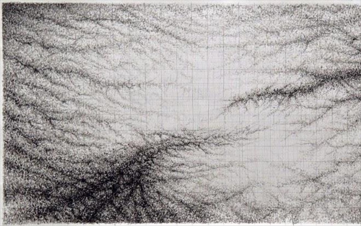 Πάνος Φαμέλης, ALMOST, 2015. Μελάνι και στυλό σε χαρτί, 150 x 300 εκατοστά.