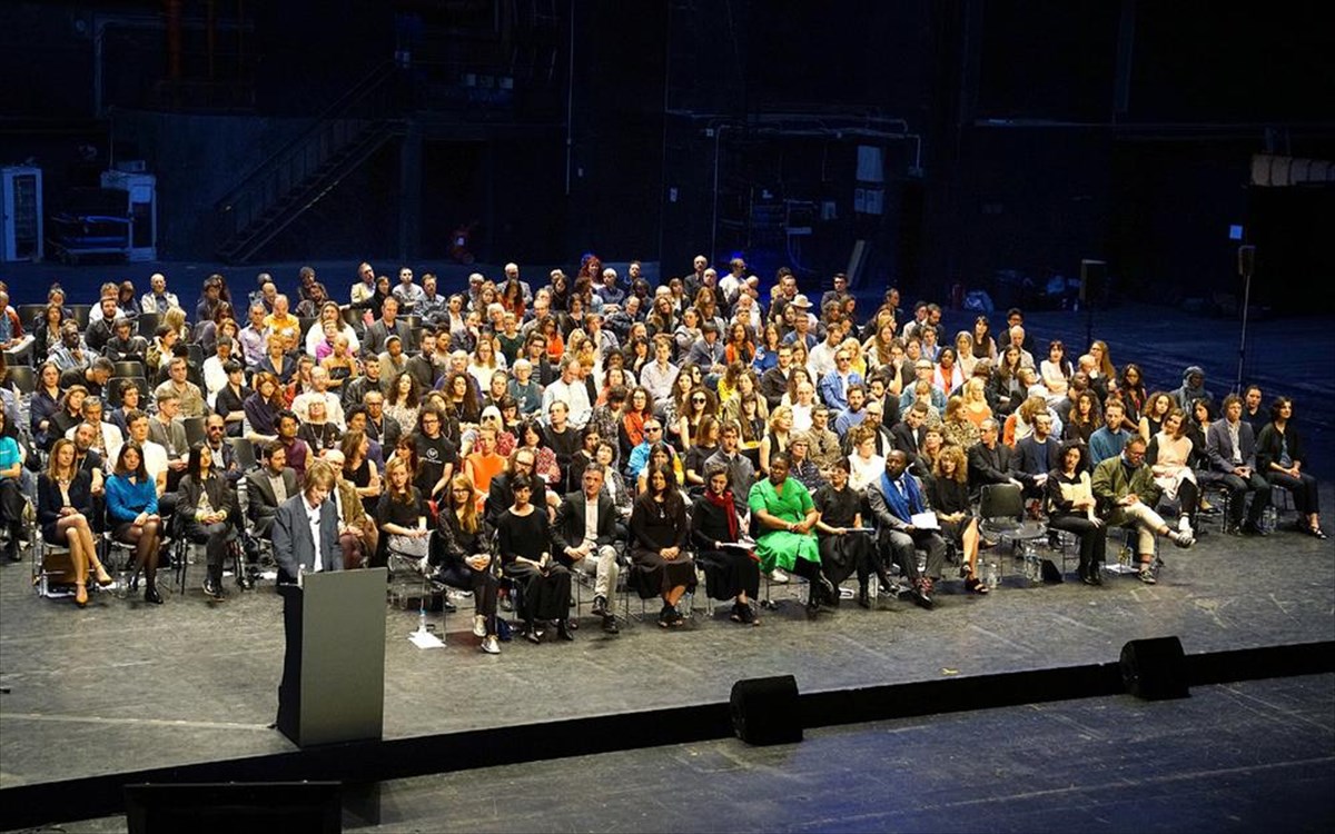 Ανάμεσα στους παρευρισκομένους, βρίσκονται περισσότεροι από 1.500 Έλληνες και ξένοι δημοσιογράφοι που κατέφτασαν στην πόλη για να καταγράψουν το διακύβευμα της 14ης documenta, που για πρώτη φορά στην πολυετή ιστορία της αλλάζει χωροχρόνο και από «έκθεση των 100 ημερών» στο Κάσελ γίνεται «έκθεση των 365 ημερών» μεταξύ Κάσελ και Αθήνας, όπως θα πει αργότερα ο Paul B. Preciado, ο άνθρωπος που επιμελήθηκε την αμφιλεγόμενη «Βουλή των Σωμάτων» που πυροδότησε πόλωση στον εγχώριο εικαστικό διάλογο τον περασμένο Σεπτέμβριο στο Πάρκο Ελευθερίας.