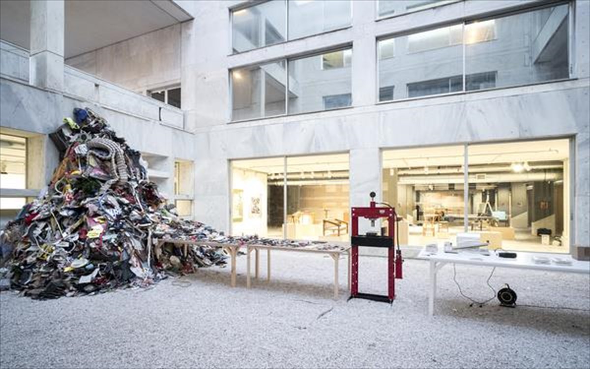 Documenta 14 / Mathias VölzkeDaniel Knorr «Βιβλίο Καλλιτέχνη» 2017, υλοποίηση, άποψη εγκατάστασης, Ωδείο Αθηνών