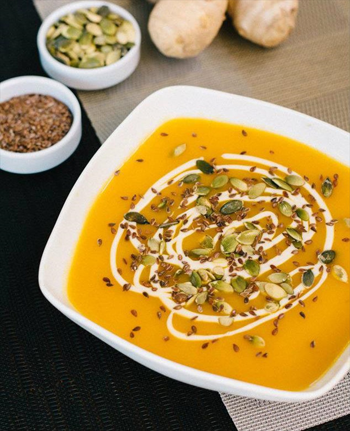 Ξεκινήσαμε με αχνιστή βελουτέ σούπα εποχής με καρότο, κολοκυθόσπορο, λιναρόσπορο, κρεμμύδι, γιαούρτι και τζίντζερ (4,5 ευρώ), νόστιμη και καυτερή με το τζίντζερ να υπερισχύει και το γιαούρτι να «μαλακώνει» τη γεύση, και συνεχίσαμε τσιμπολογώντας ενταμάμε με αλάτι και σουσάμι (2,70 ευρώ).