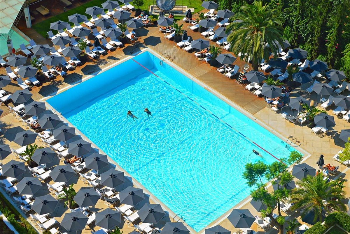 Κι όλα αυτά μπορείτε να τα απολαύσετε στην ανανεωμένη πισίνα, με καινούργιες ομπρέλες σε χρώμα γκρι της άμμου και λευκές, μεγαλύτερες ξαπλώστρες, που προσδίδουν στο ήδη εντυπωσιακό σκηνικό μια ατμόσφαιρα γαλήνης και διακριτικής πολυτέλειας.