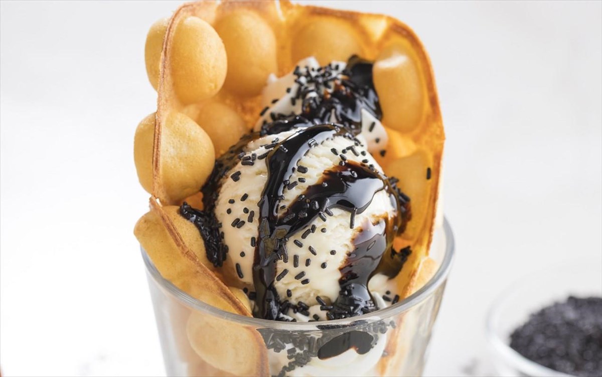 Βάφλα και προφιτερόλ μαζί, με παγωτό Ninnolo